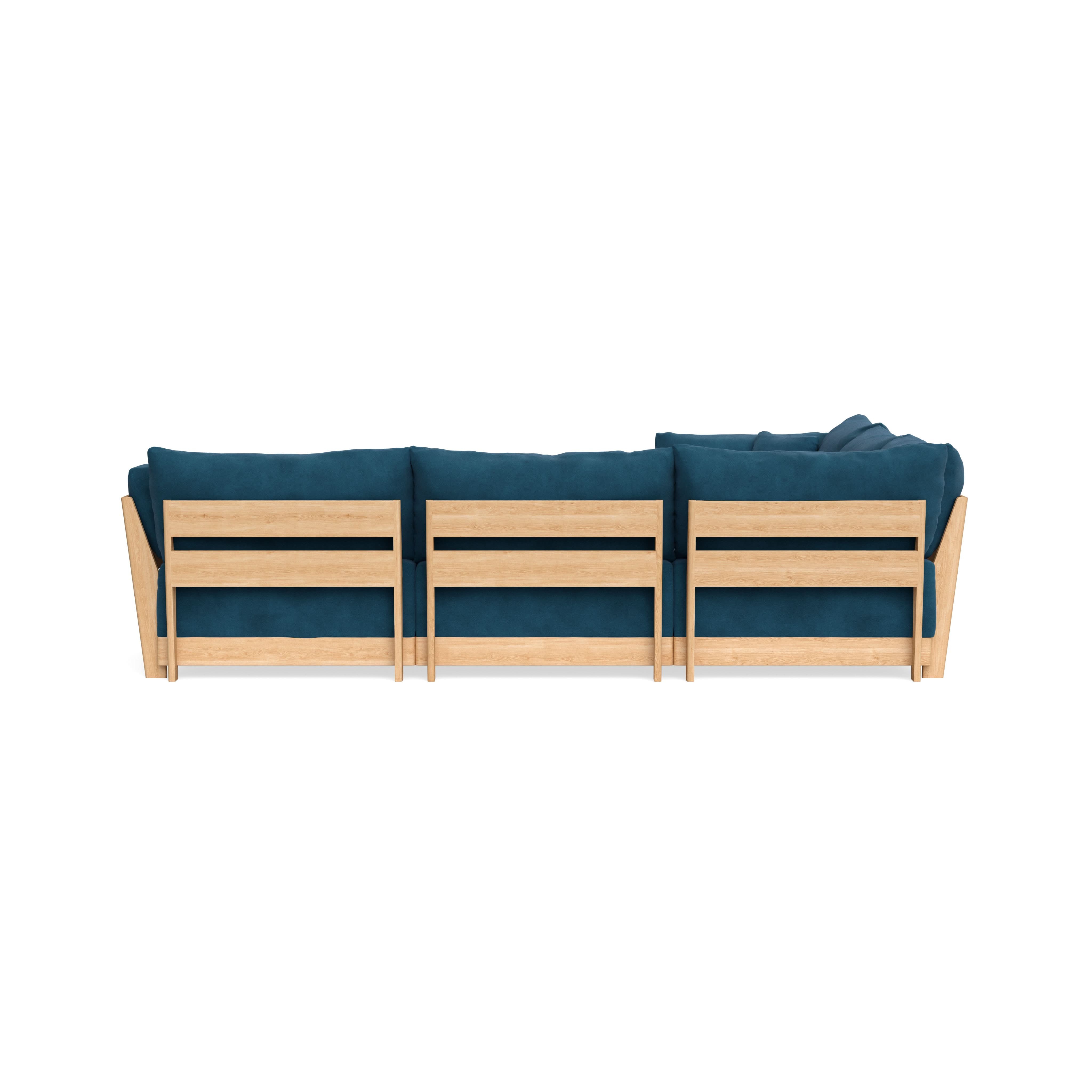 Made to move and adapt with your ever-changing lifestyle. Every patent pending seat block is alike and can be used in the middle, on the end, or as a corner piece in your sofa. Likewise, every slatted solid wood panel is identical and can be used as either an “arm” or a “back”. And the ottomans? Also adaptable! Ottomans can stand alone or serve as an extension to your sofa by connecting to any seat module at its base.