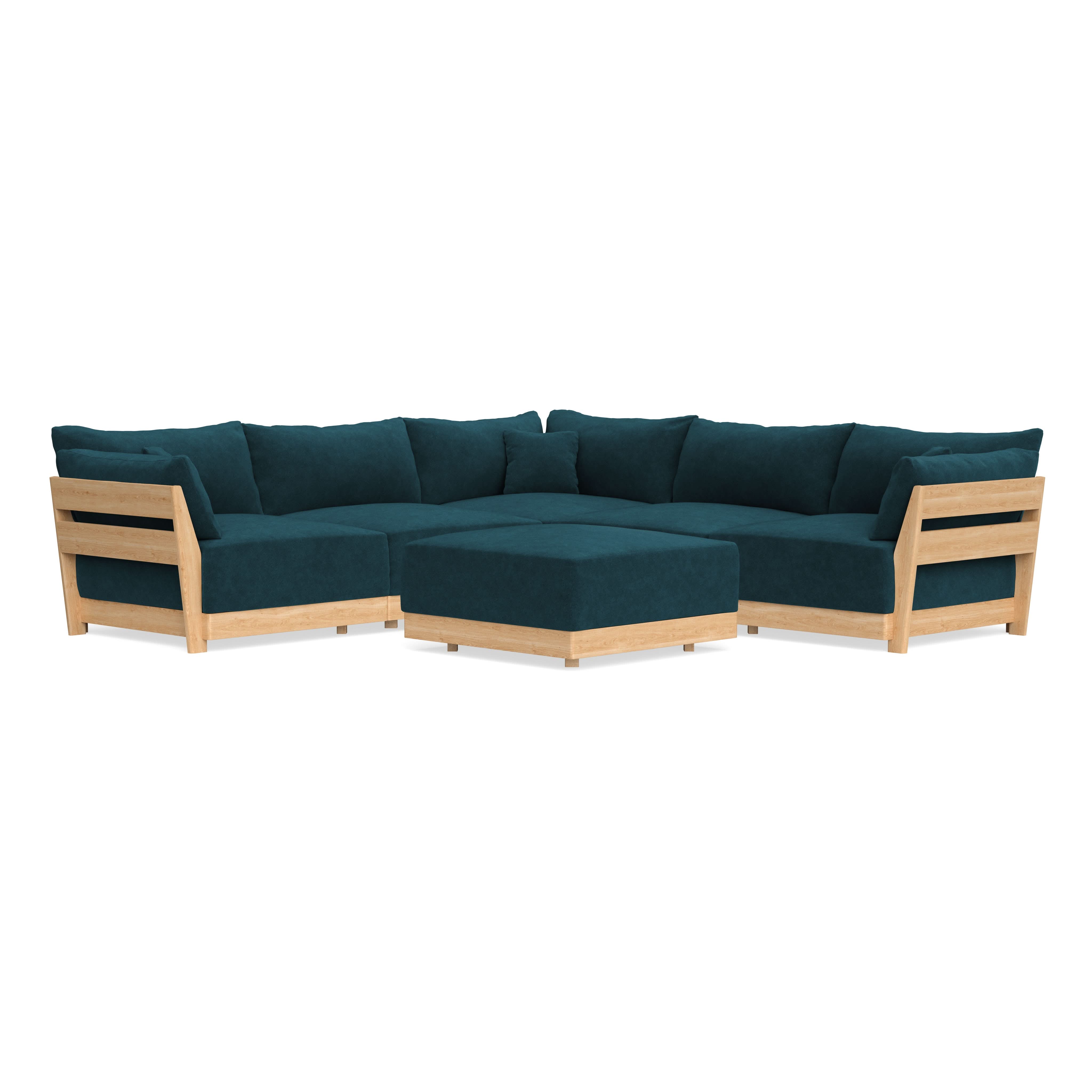 Modular Bondi Latte 5-Seater Corner Sectional + Ottoman in Indigo | Classic Blend