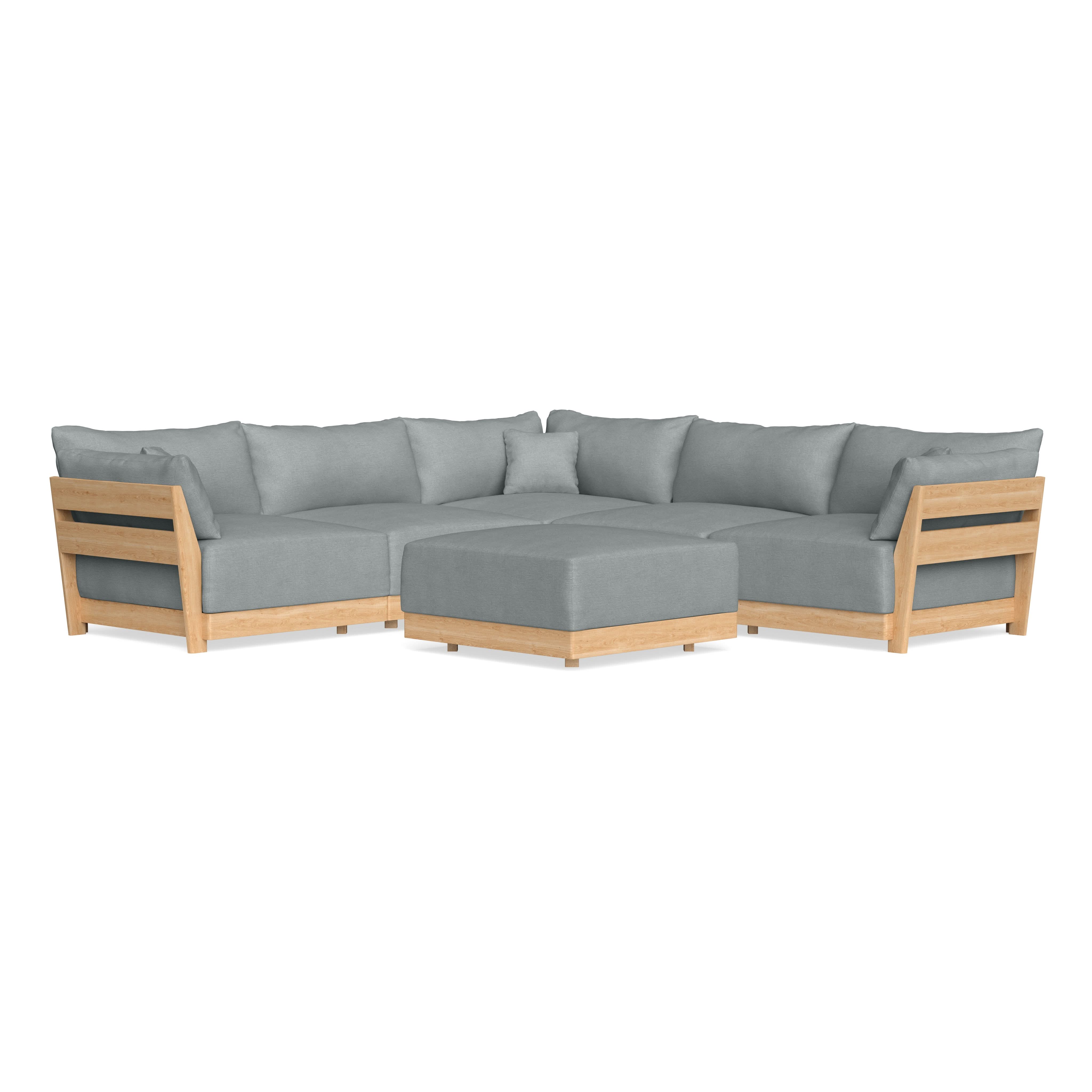 Modular Bondi Latte 5-Seater Corner Sectional + Ottoman in Light Steel | Memory Foam Blend