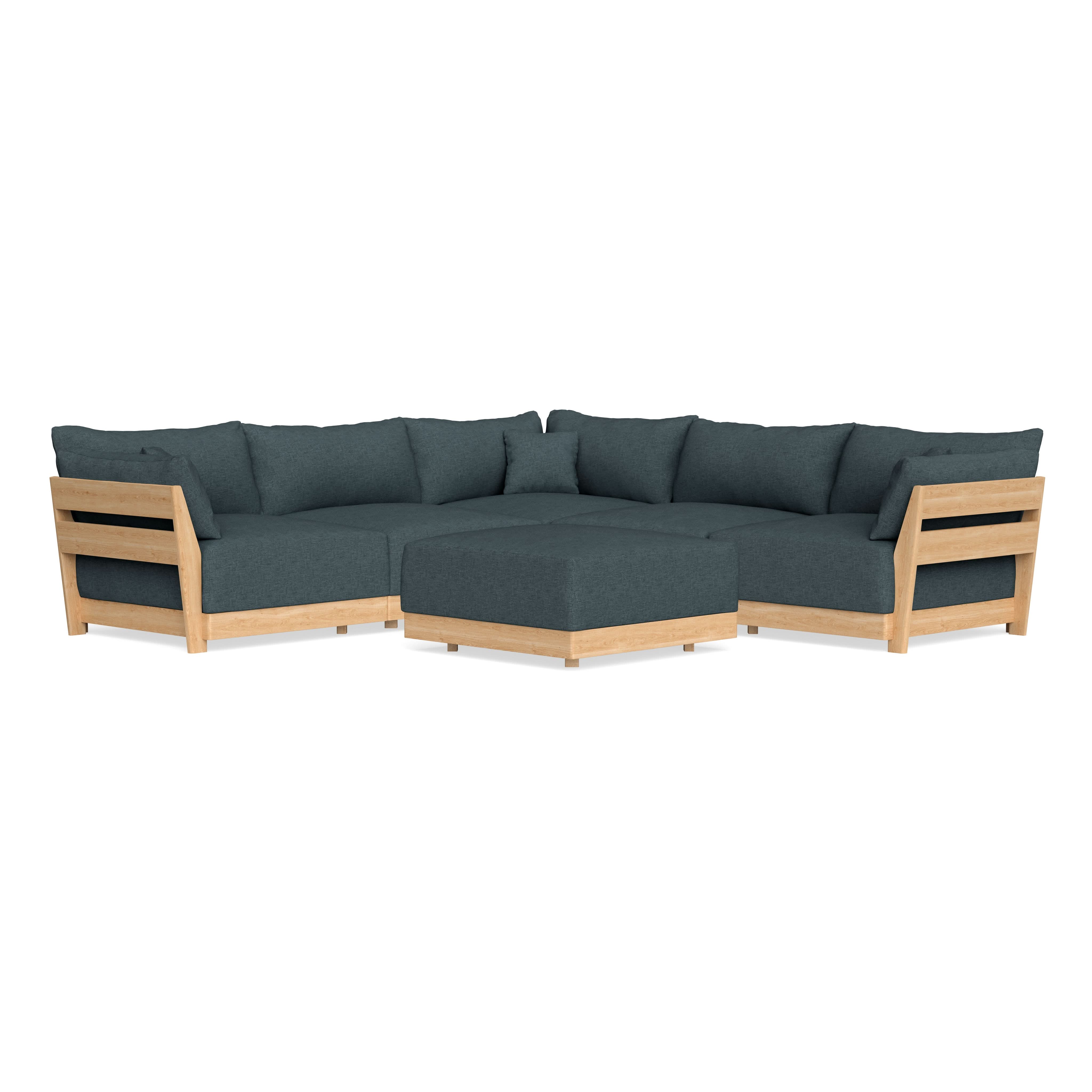 Modular Bondi Latte 5-Seater Corner Sectional + Ottoman in Ocean Gray | Classic Blend