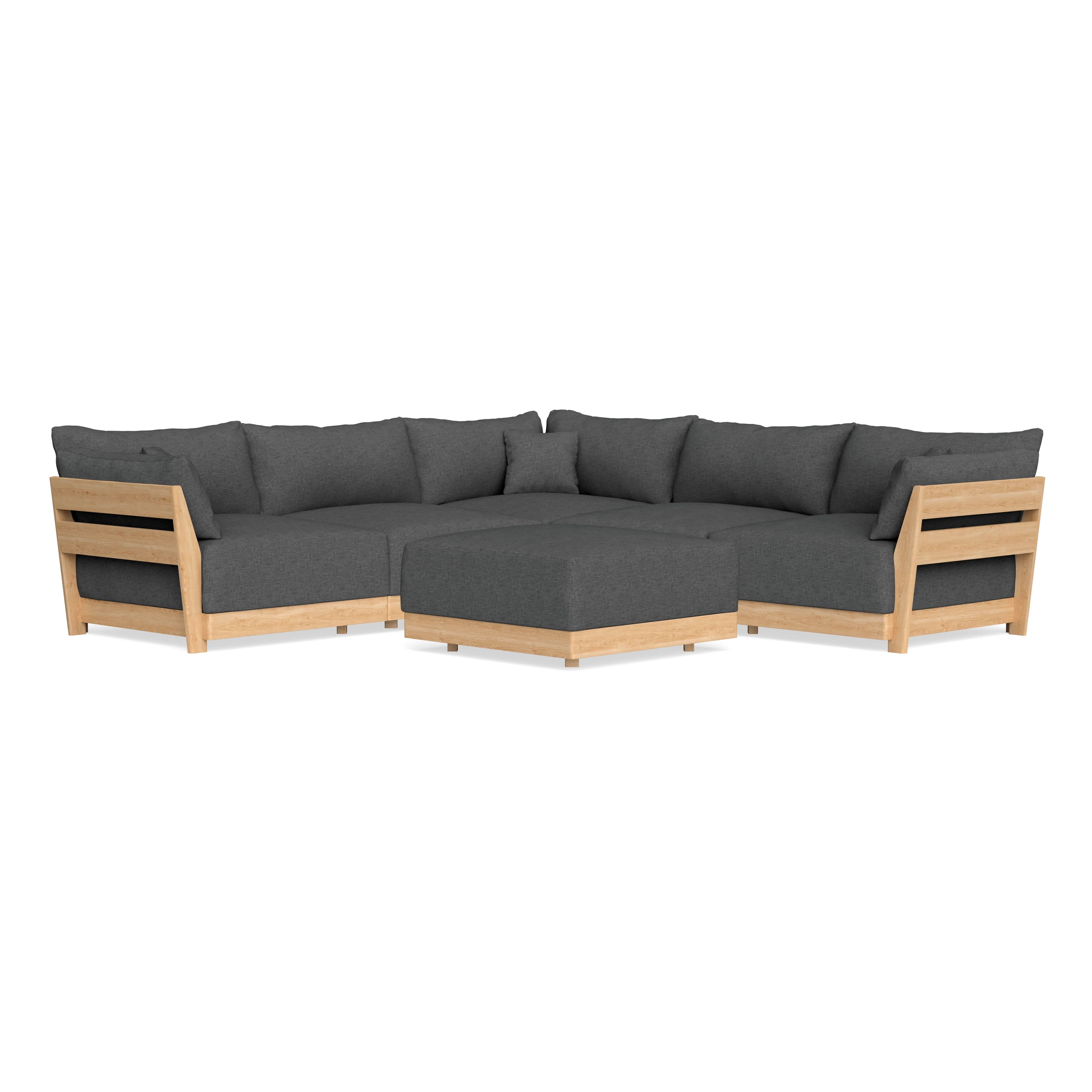 Made to move and adapt with your ever-changing lifestyle. Every patent pending seat block is alike and can be used in the middle, on the end, or as a corner piece in your sofa. Likewise, every slatted solid wood panel is identical and can be used as either an “arm” or a “back”. And the ottomans? Also adaptable! Ottomans can stand alone or serve as an extension to your sofa by connecting to any seat module at its base.