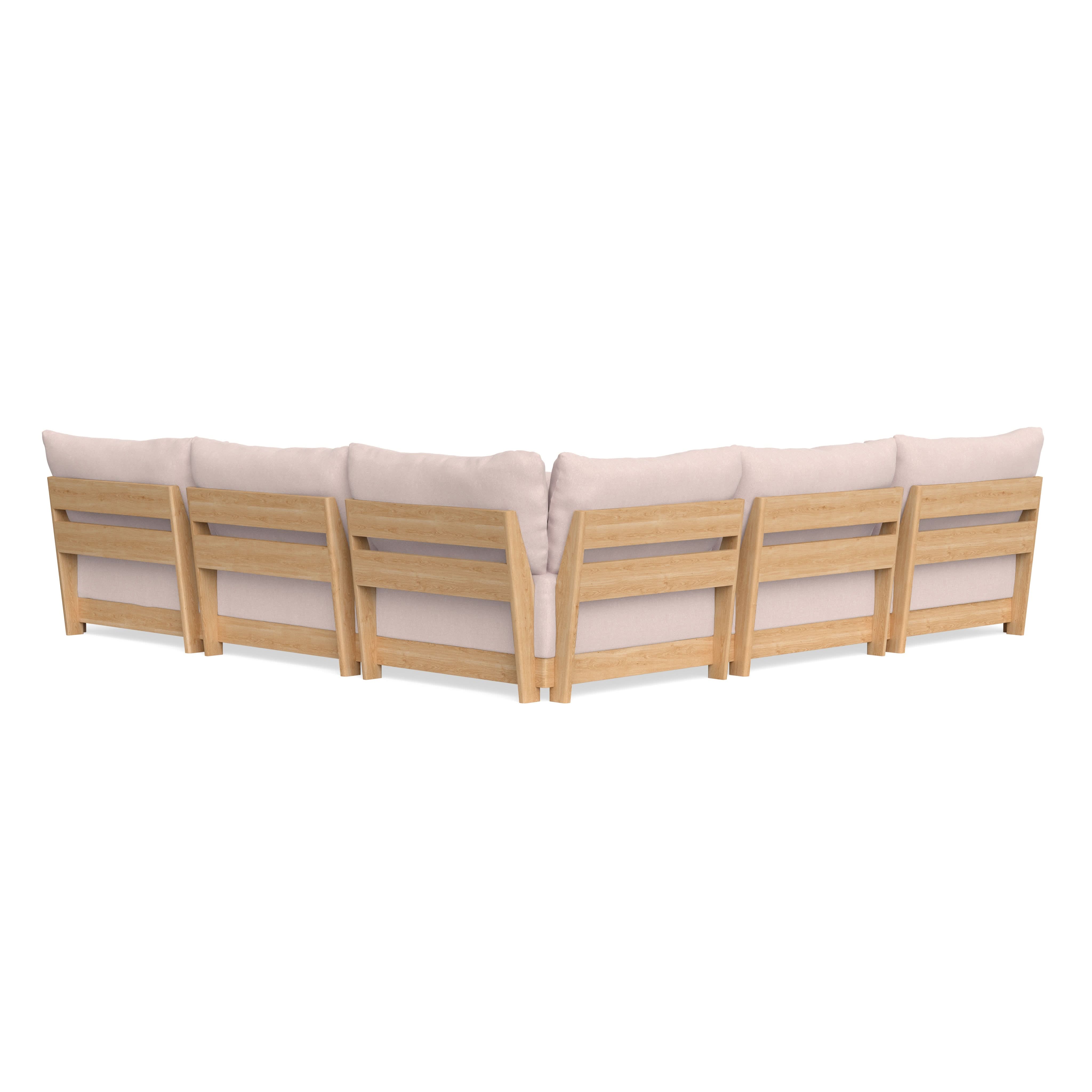 Every seat block is alike and can be used in the middle, on the end, or as a corner piece in your sofa. Each solid wood arm/back panel is identical and can be attached to any three sides of a seat block. Ottomans are adaptable too, as they can stand alone or serve as an extension to your sofa by being attached to any seat block at its base. Note that arm/back panels cannot be attached to an ottoman base.