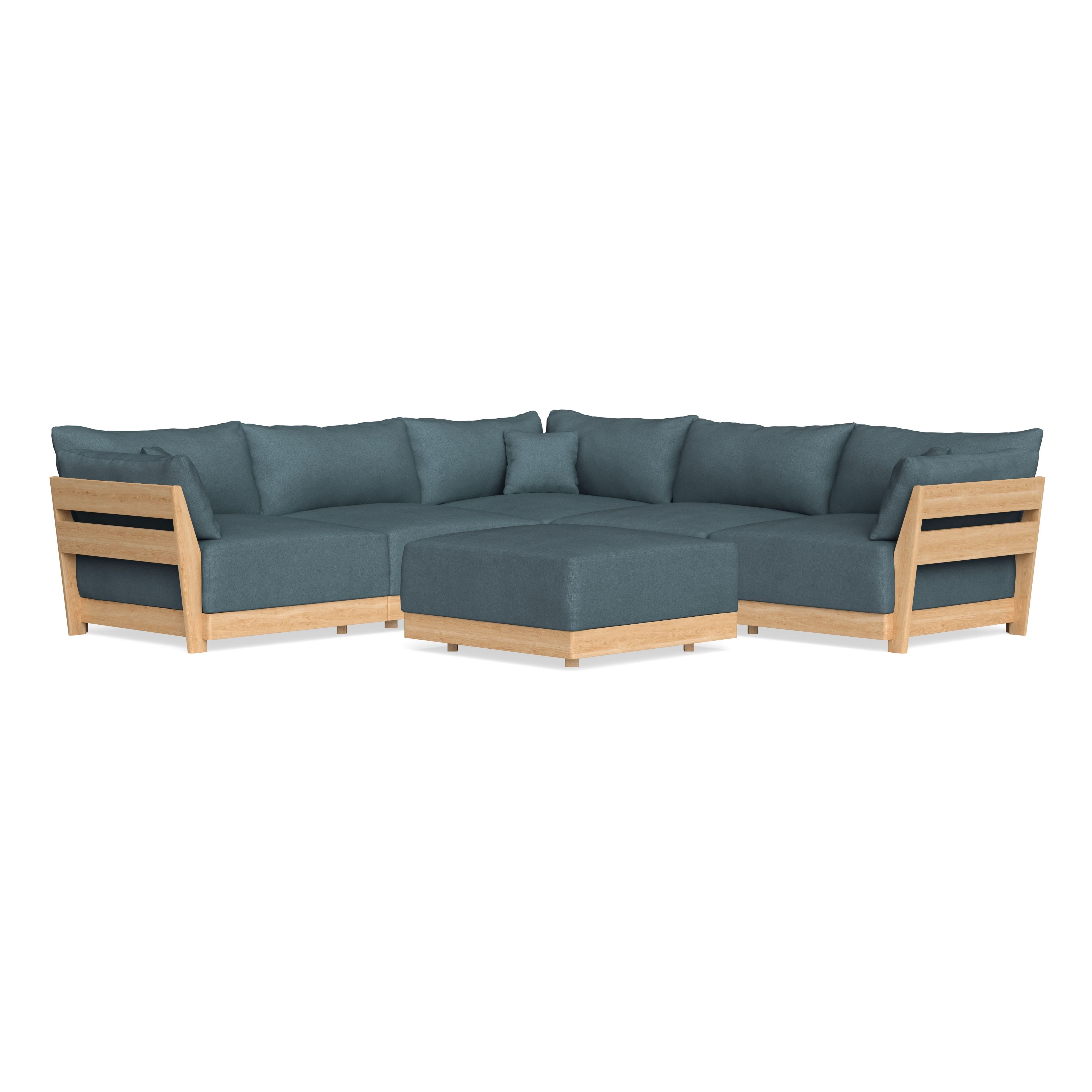 Modular Bondi Latte 5-Seater Corner Sectional + Ottoman in Slate Blue | Memory Foam Blend