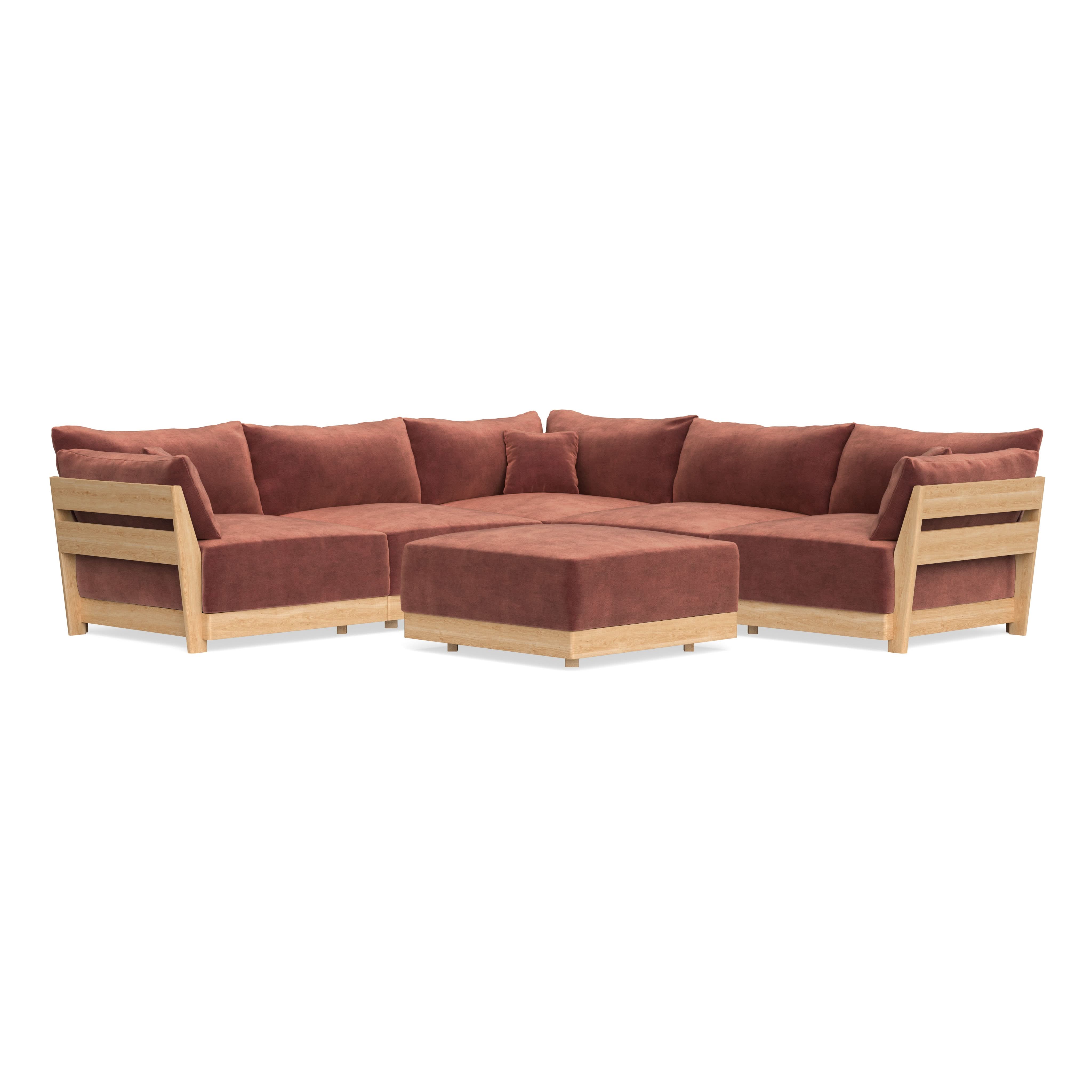 Modular Bondi Latte 5-Seater Corner Sectional + Ottoman in Spice | Classic Blend