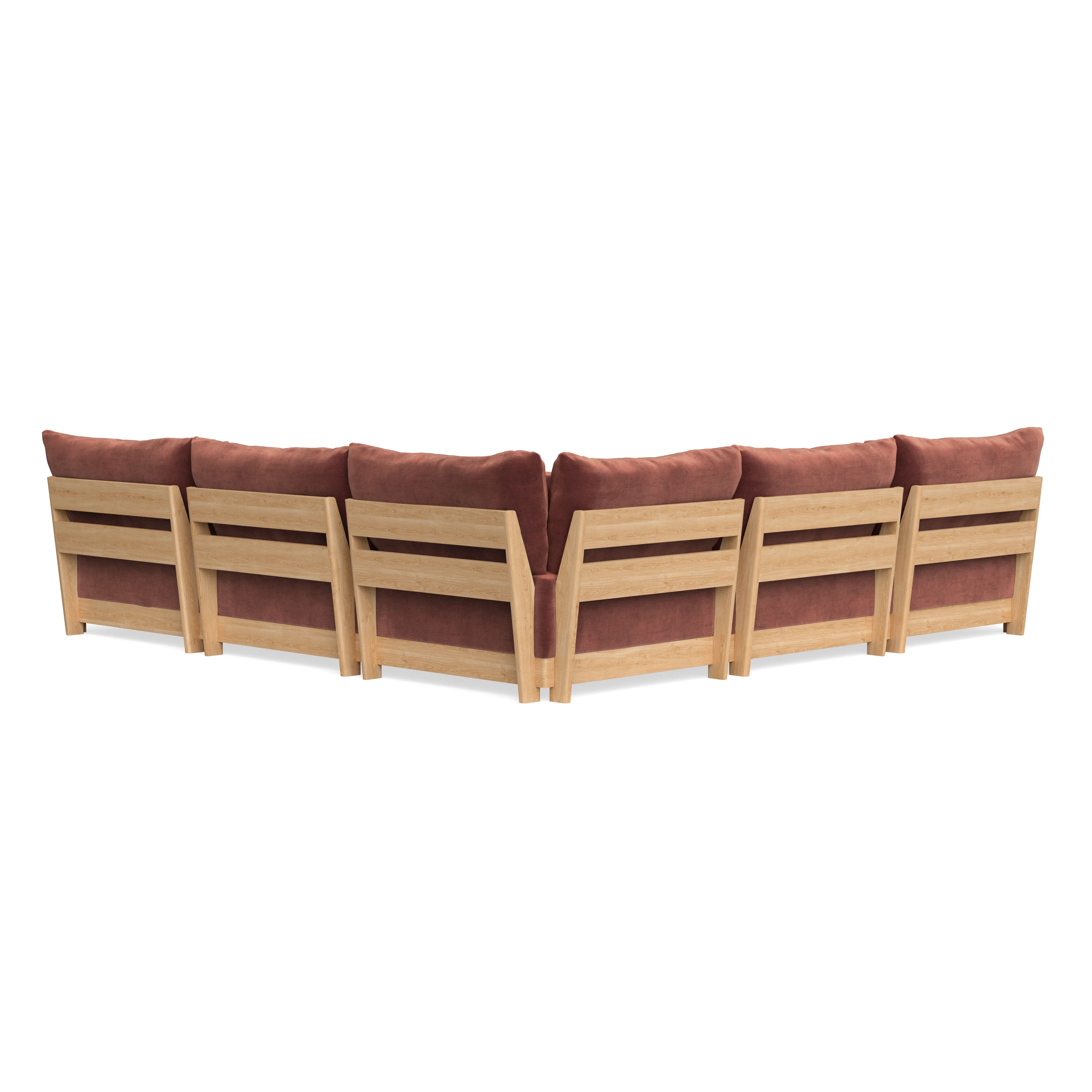 Every seat block is alike and can be used in the middle, on the end, or as a corner piece in your sofa. Each solid wood arm/back panel is identical and can be attached to any three sides of a seat block. Ottomans are adaptable too, as they can stand alone or serve as an extension to your sofa by being attached to any seat block at its base. Note that arm/back panels cannot be attached to an ottoman base.