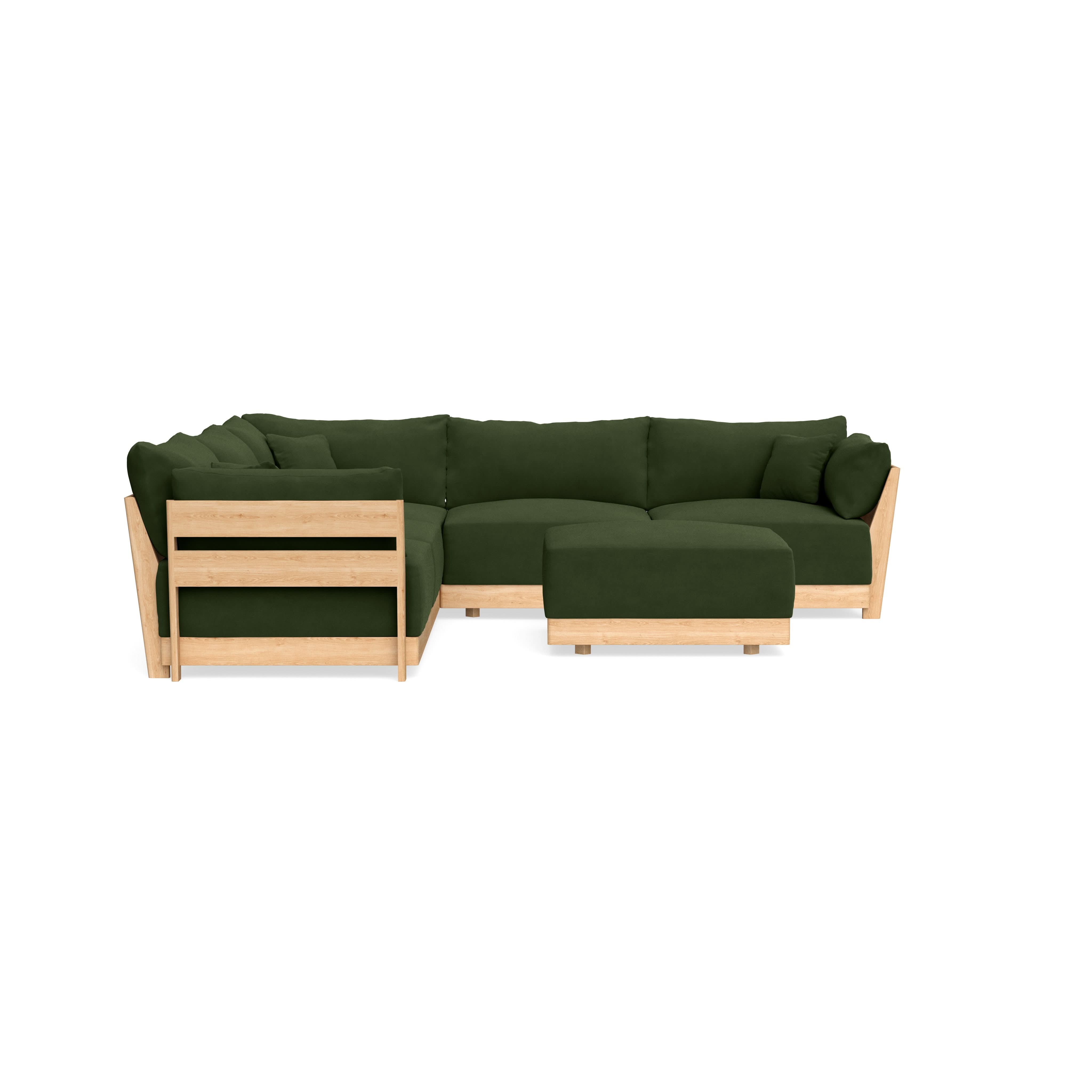 Modular Bondi Latte 5-Seater Corner Sectional + Ottoman in Tuscan Green | Memory Foam Blend