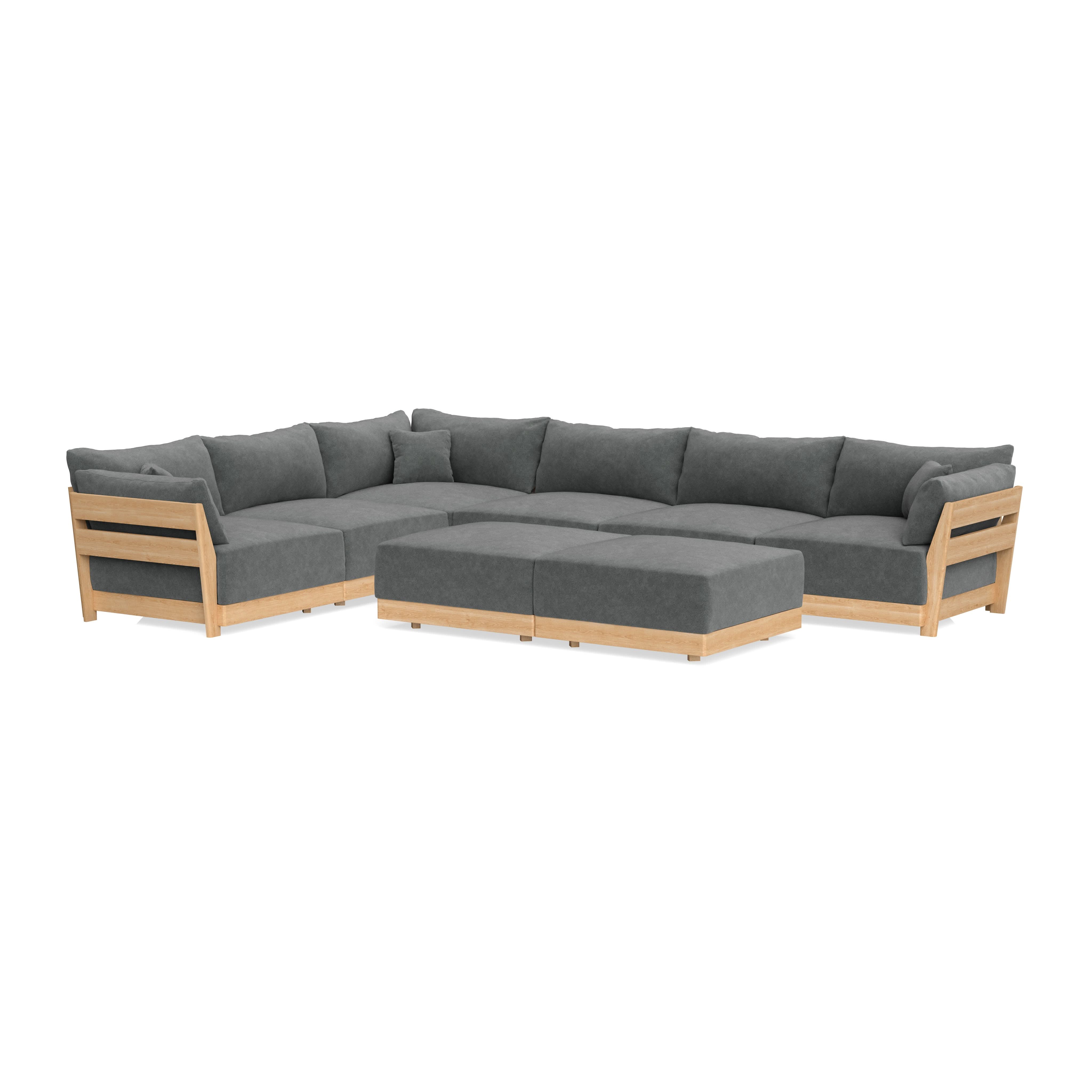 Modular Bondi Latte 6-Seater Corner Sectional + Bench Ottoman in Chimney Gray | Classic Blend