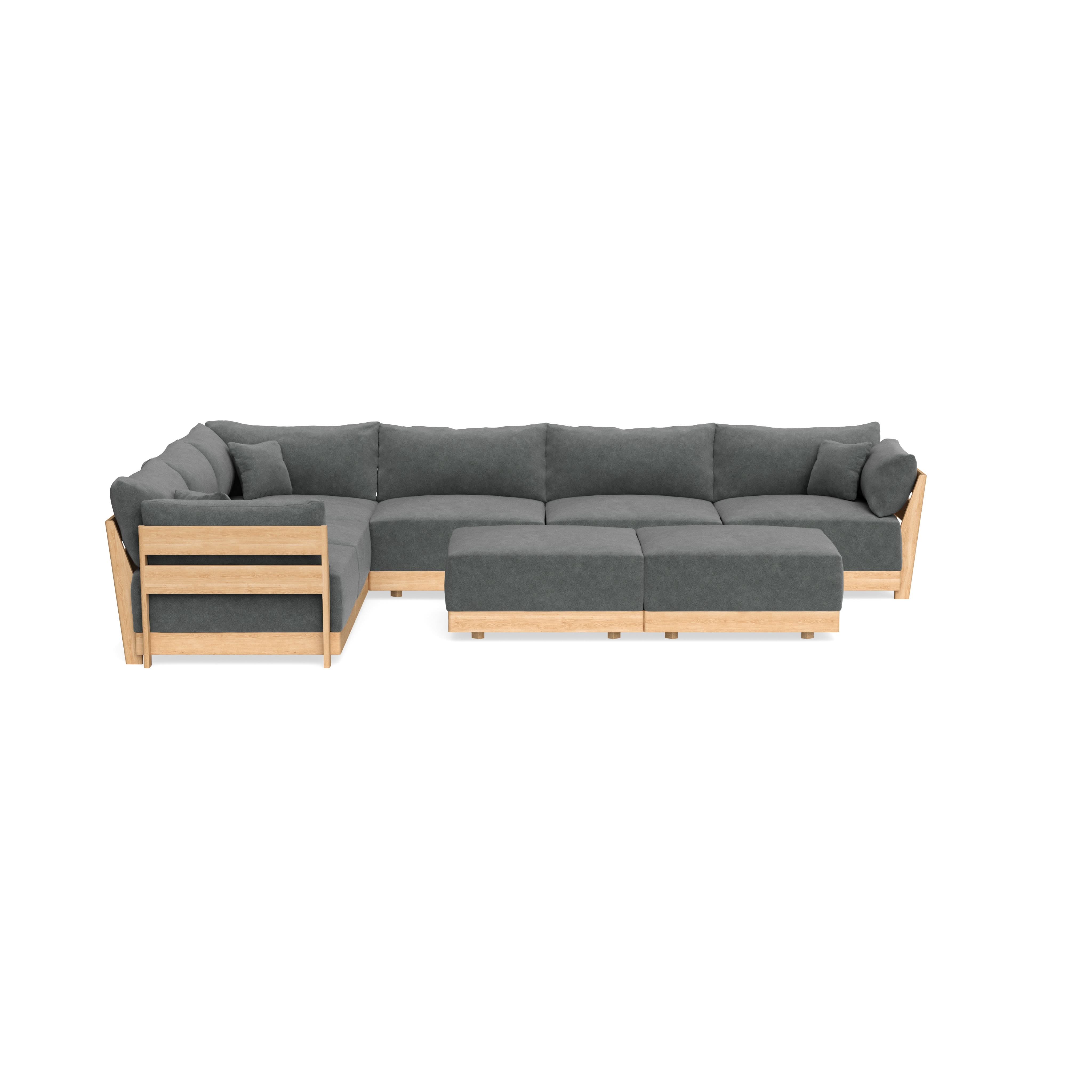 Modular Bondi Latte 6-Seater Corner Sectional + Bench Ottoman in Chimney Gray | Memory Foam Blend