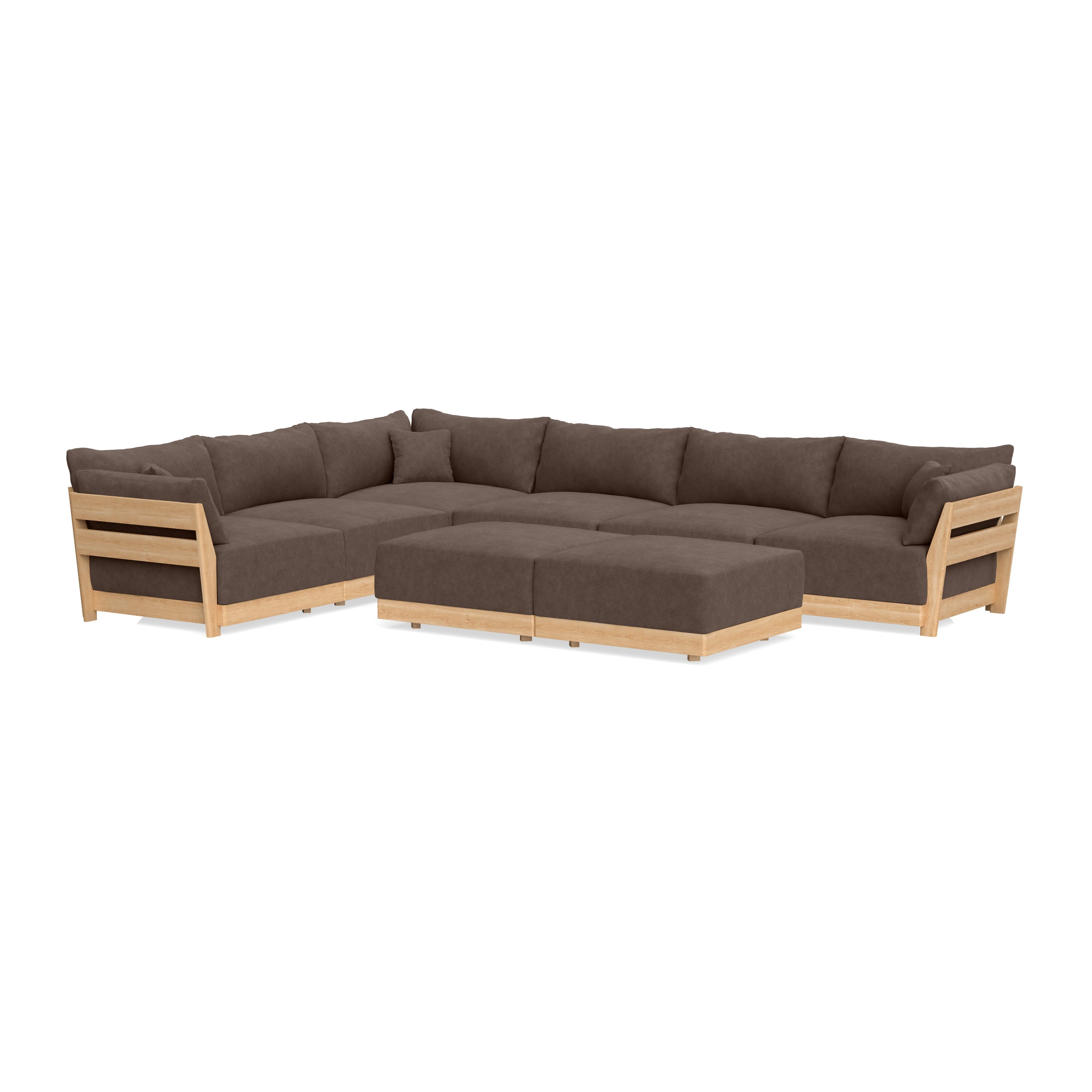 Modular Bondi Latte 6-Seater Corner Sectional + Bench Ottoman in Chocolate | Classic Blend