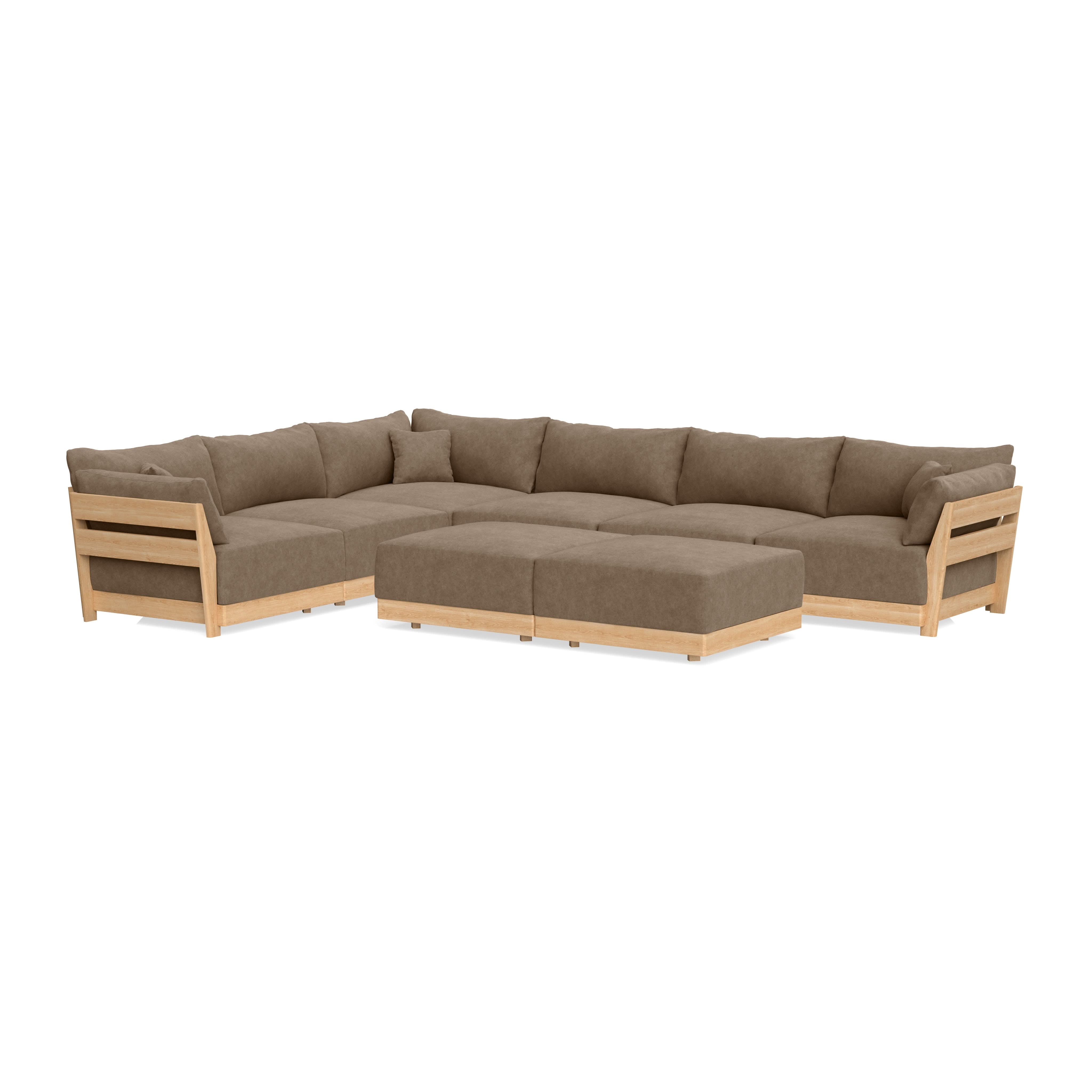 Modular Bondi Latte 6-Seater Corner Sectional + Bench Ottoman in Coffee | Classic Blend