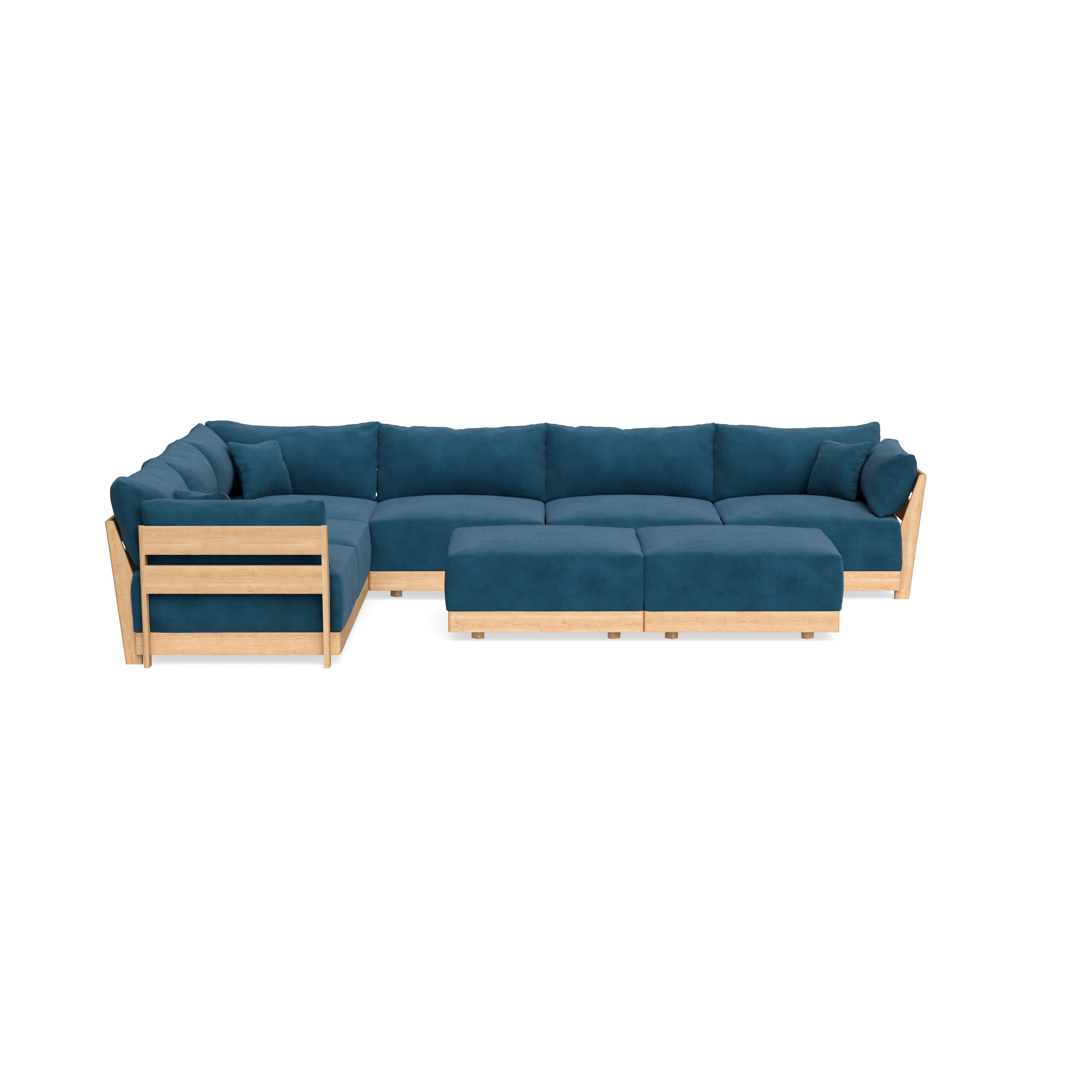 Modular Bondi Latte 6-Seater Corner Sectional + Bench Ottoman in Commodore Blue | Classic Blend