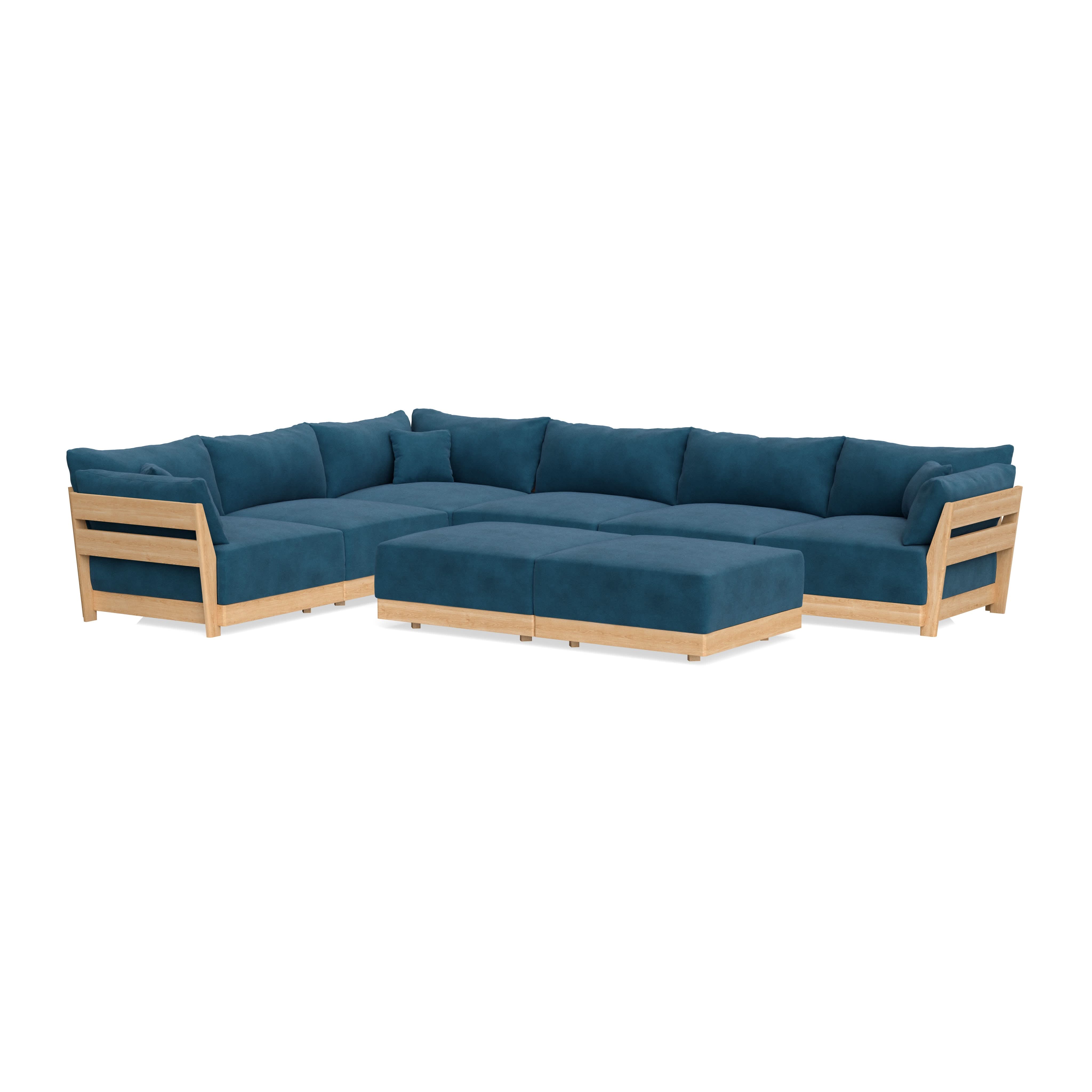Modular Bondi Latte 6-Seater Corner Sectional + Bench Ottoman in Commodore Blue | Memory Foam Blend