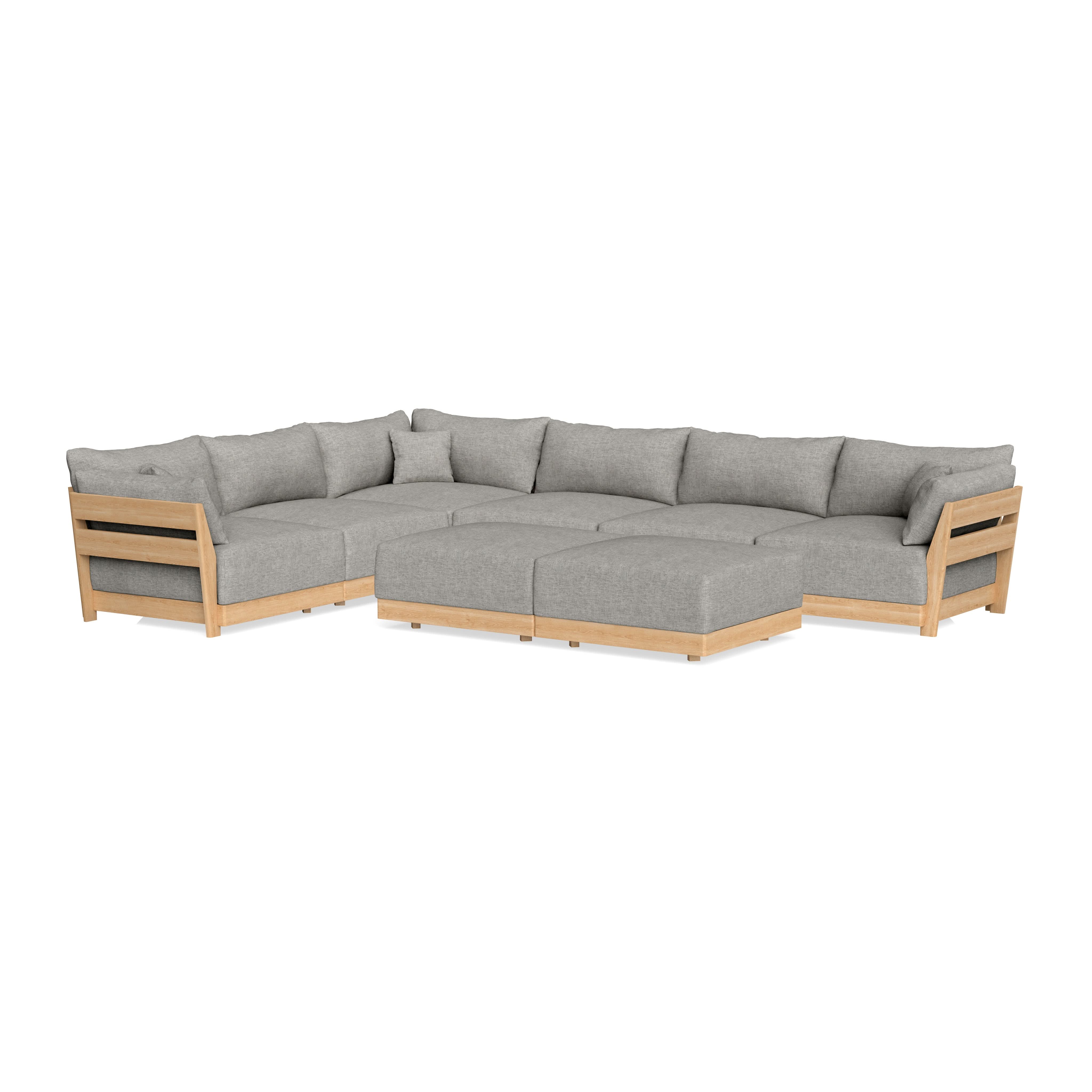 Modular Bondi Latte 6-Seater Corner Sectional + Bench Ottoman in Fog | Memory Foam Blend