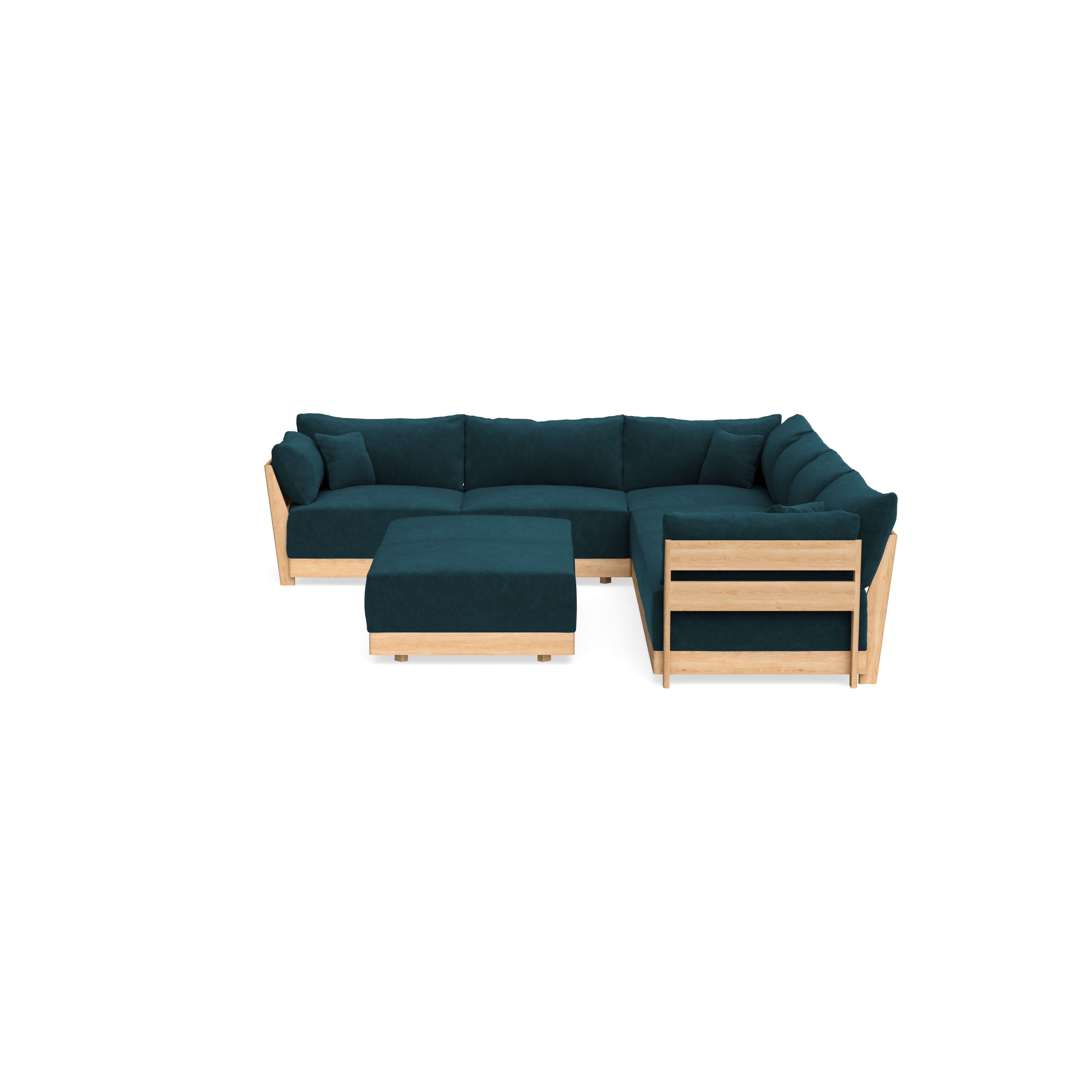 Made to move and adapt with your ever-changing lifestyle. Every patent pending seat block is alike and can be used in the middle, on the end, or as a corner piece in your sofa. Likewise, every slatted solid wood panel is identical and can be used as either an “arm” or a “back”. And the ottomans? Also adaptable! Ottomans can stand alone or serve as an extension to your sofa by connecting to any seat module at its base.