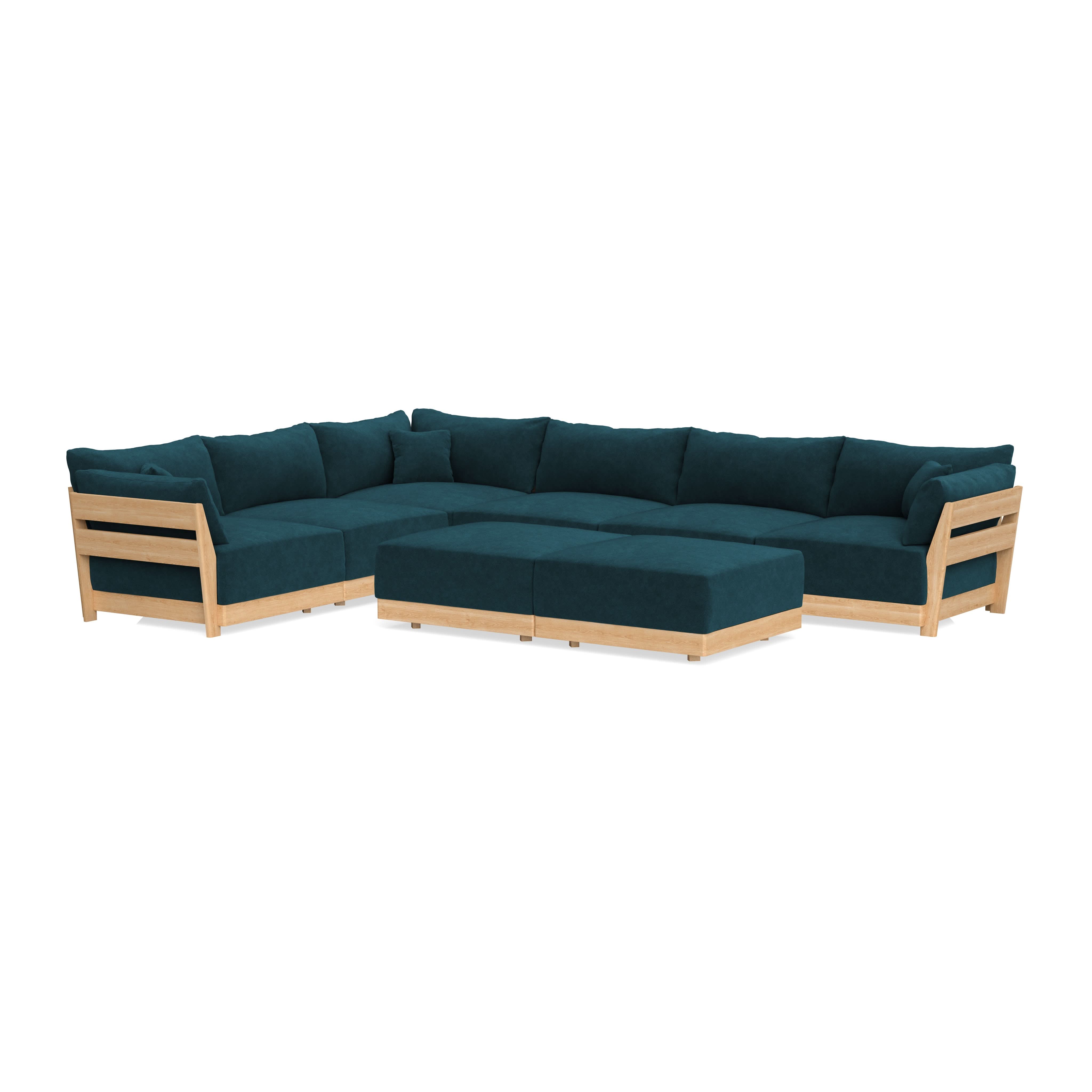 Modular Bondi Latte 6-Seater Corner Sectional + Bench Ottoman in Indigo | Classic Blend