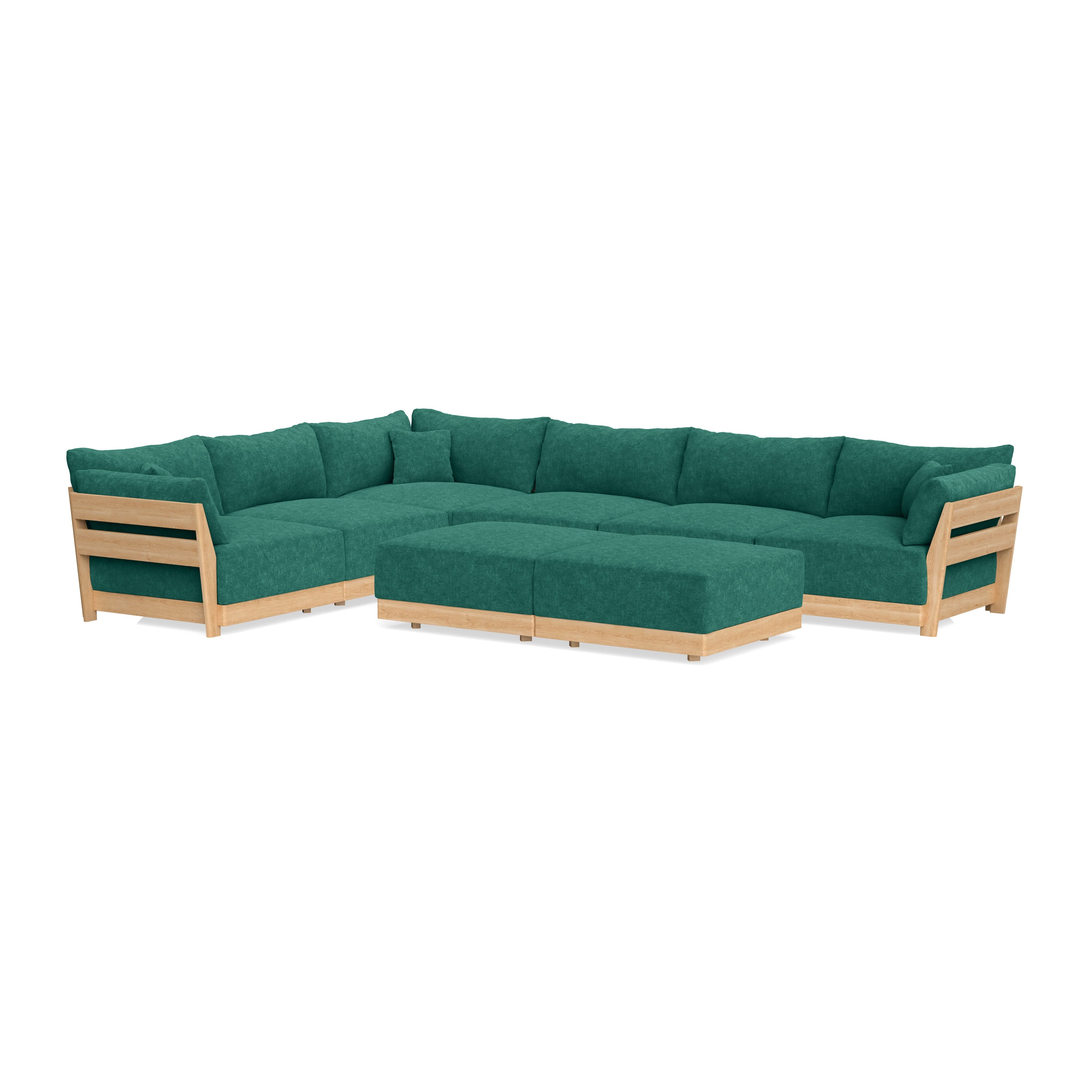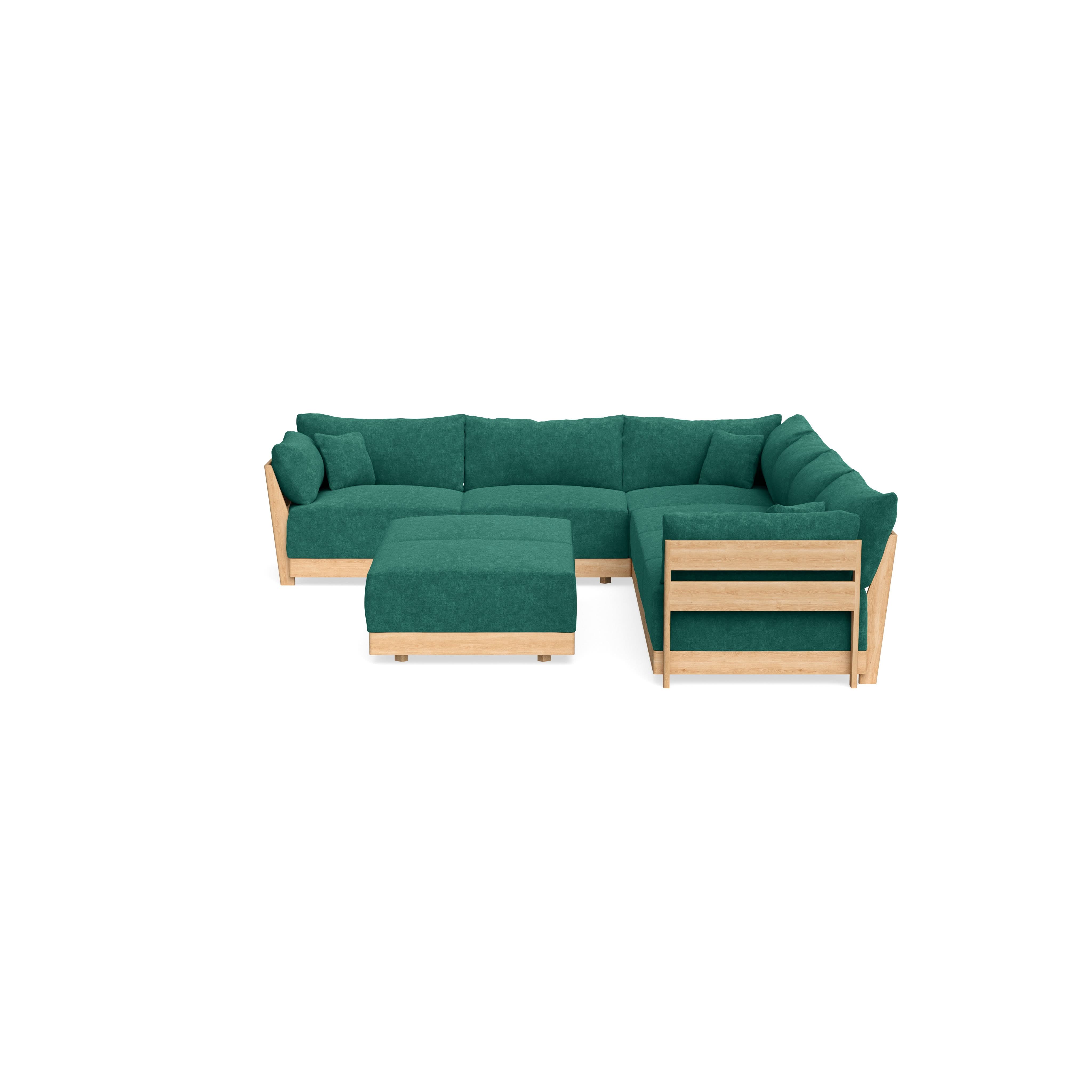 Modular Bondi Latte 6-Seater Corner Sectional + Bench Ottoman in Jade Green | Classic Blend
