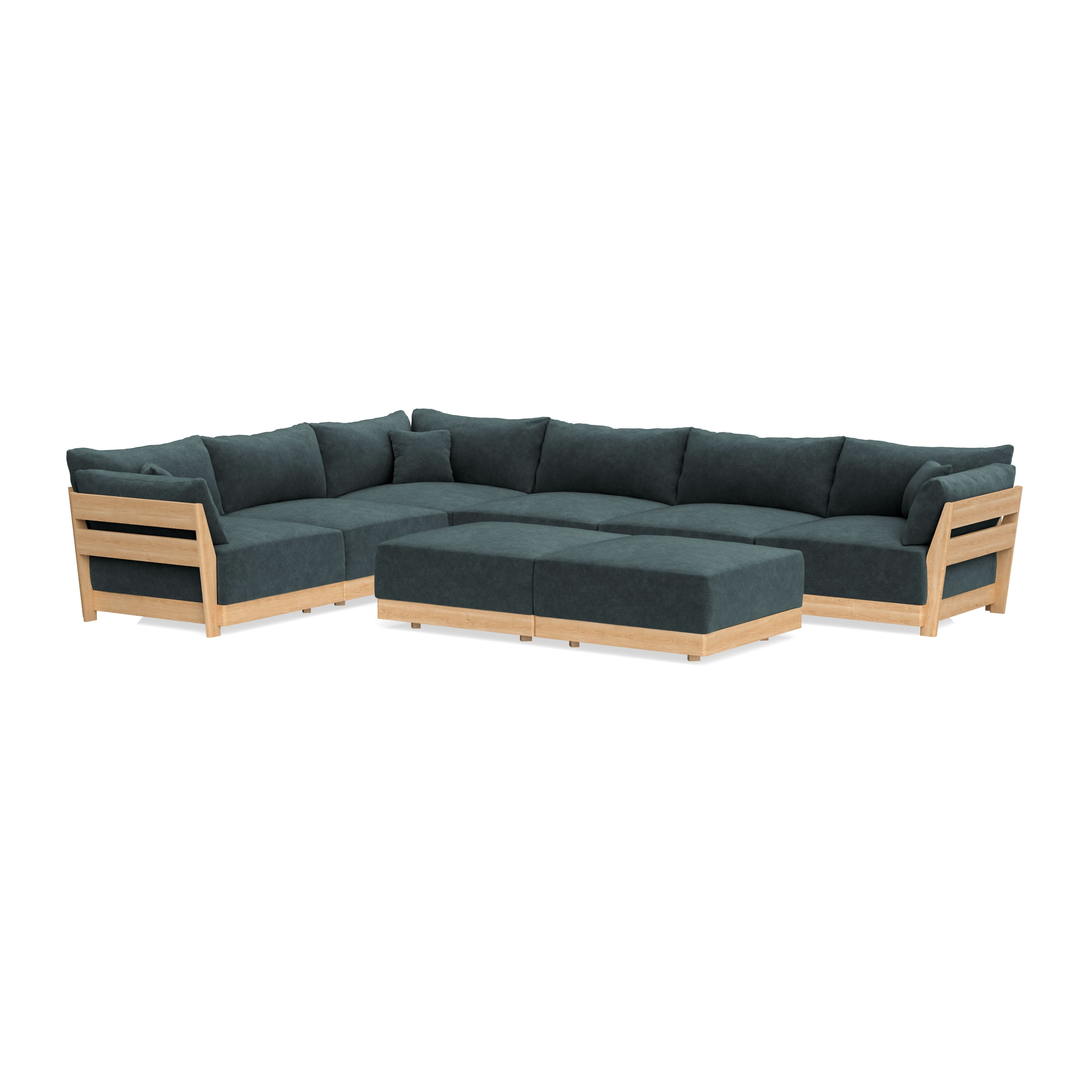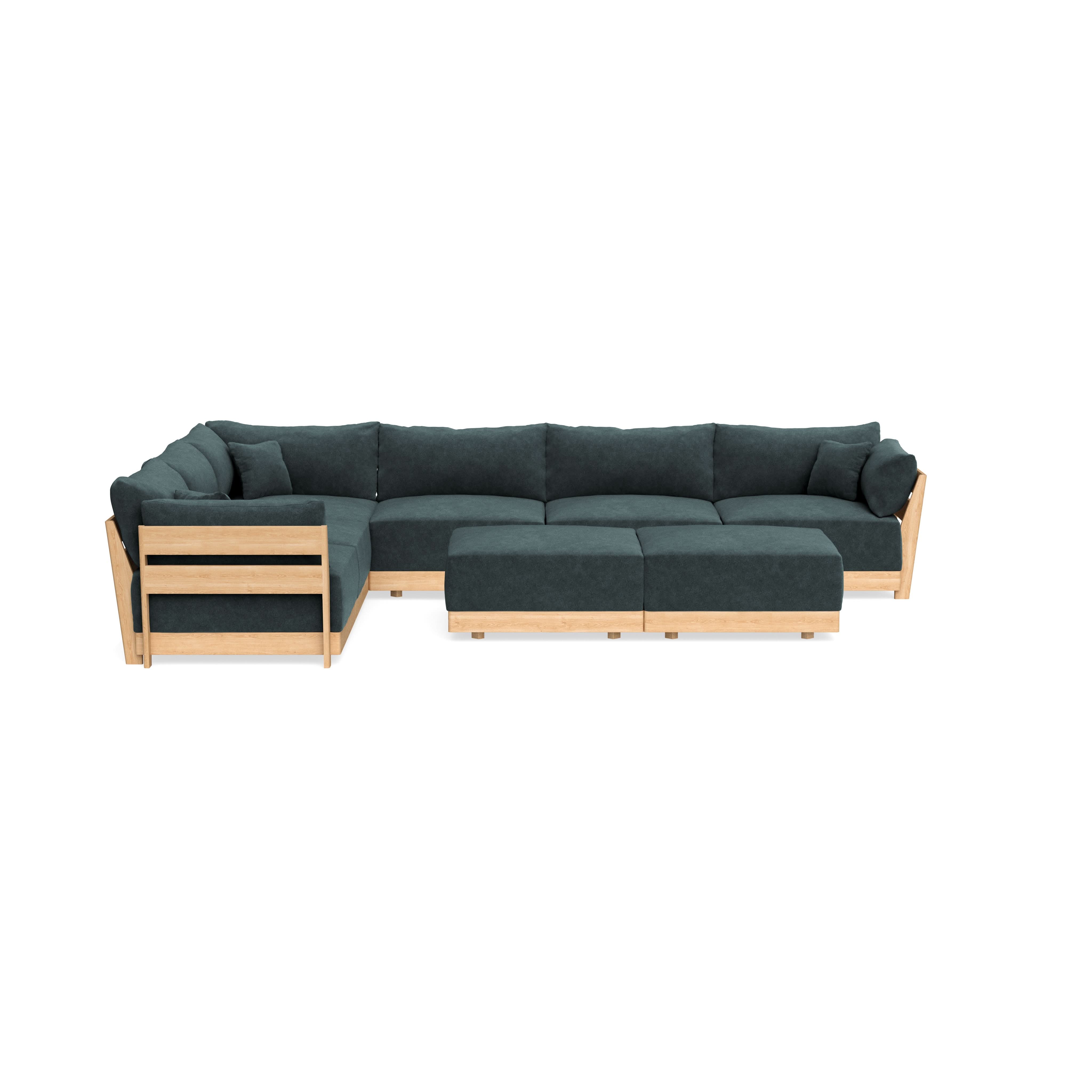 Modular Bondi Latte 6-Seater Corner Sectional + Bench Ottoman in Nightfall | Memory Foam Blend