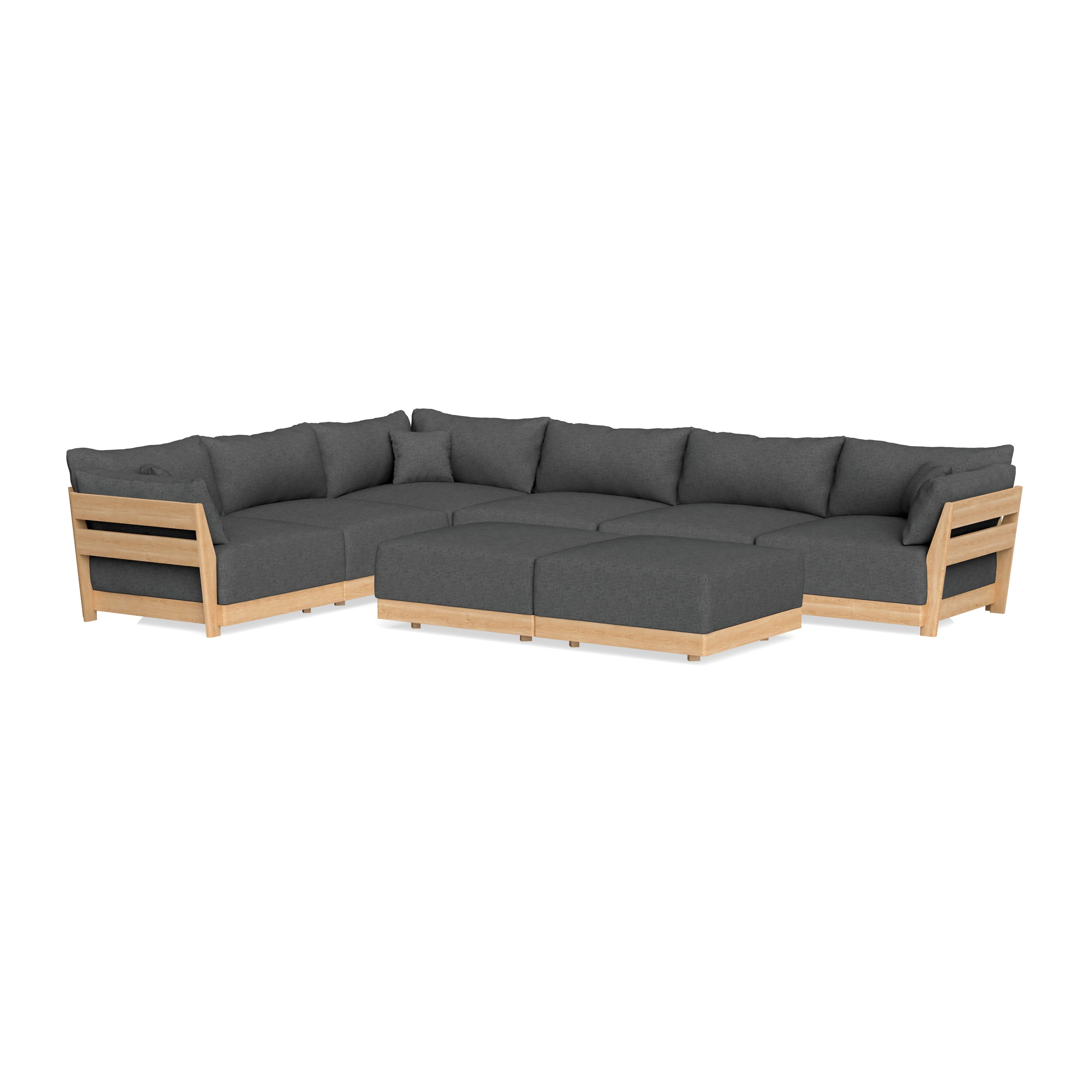 Modular Bondi Latte 6-Seater Corner Sectional + Bench Ottoman in Pebble | Memory Foam Blend