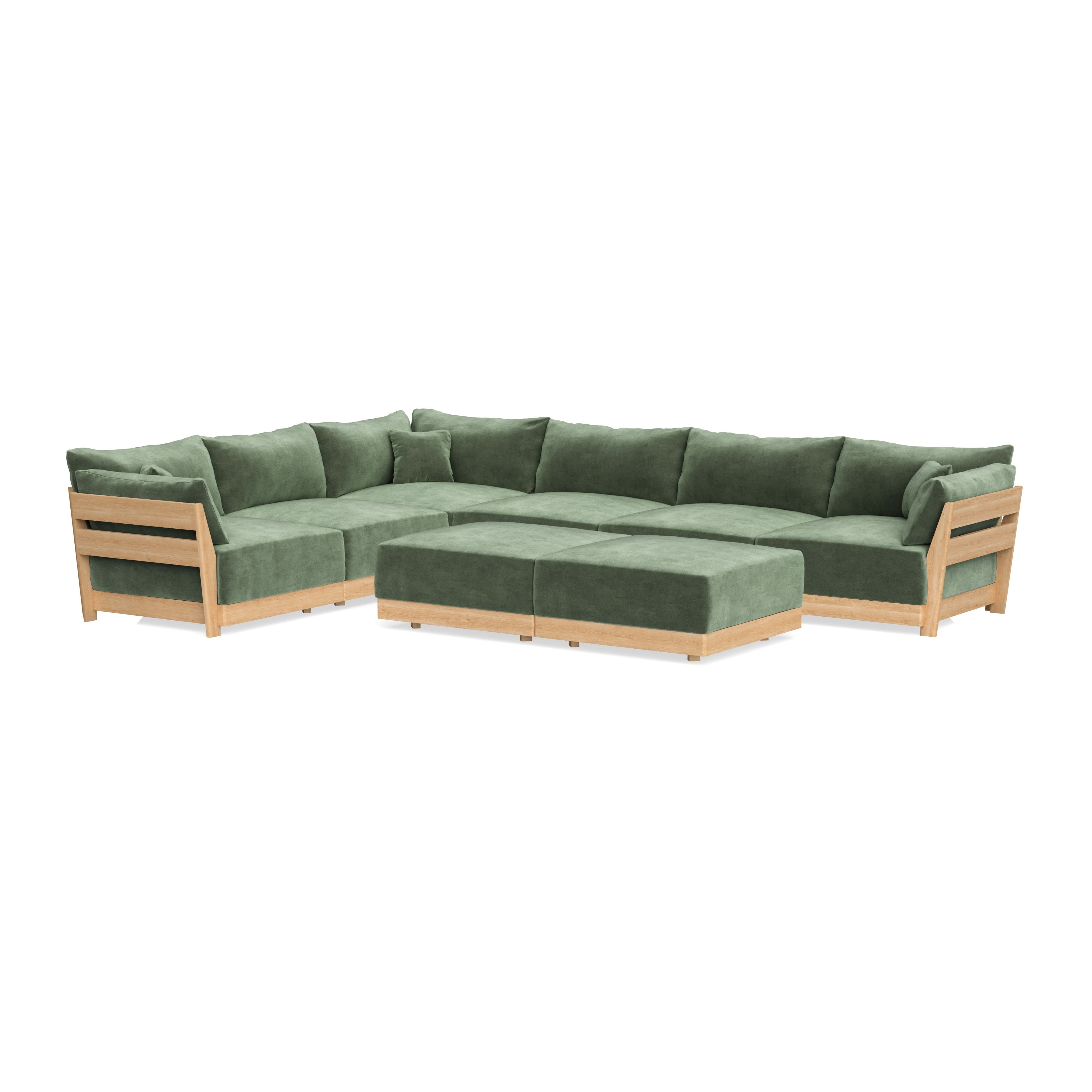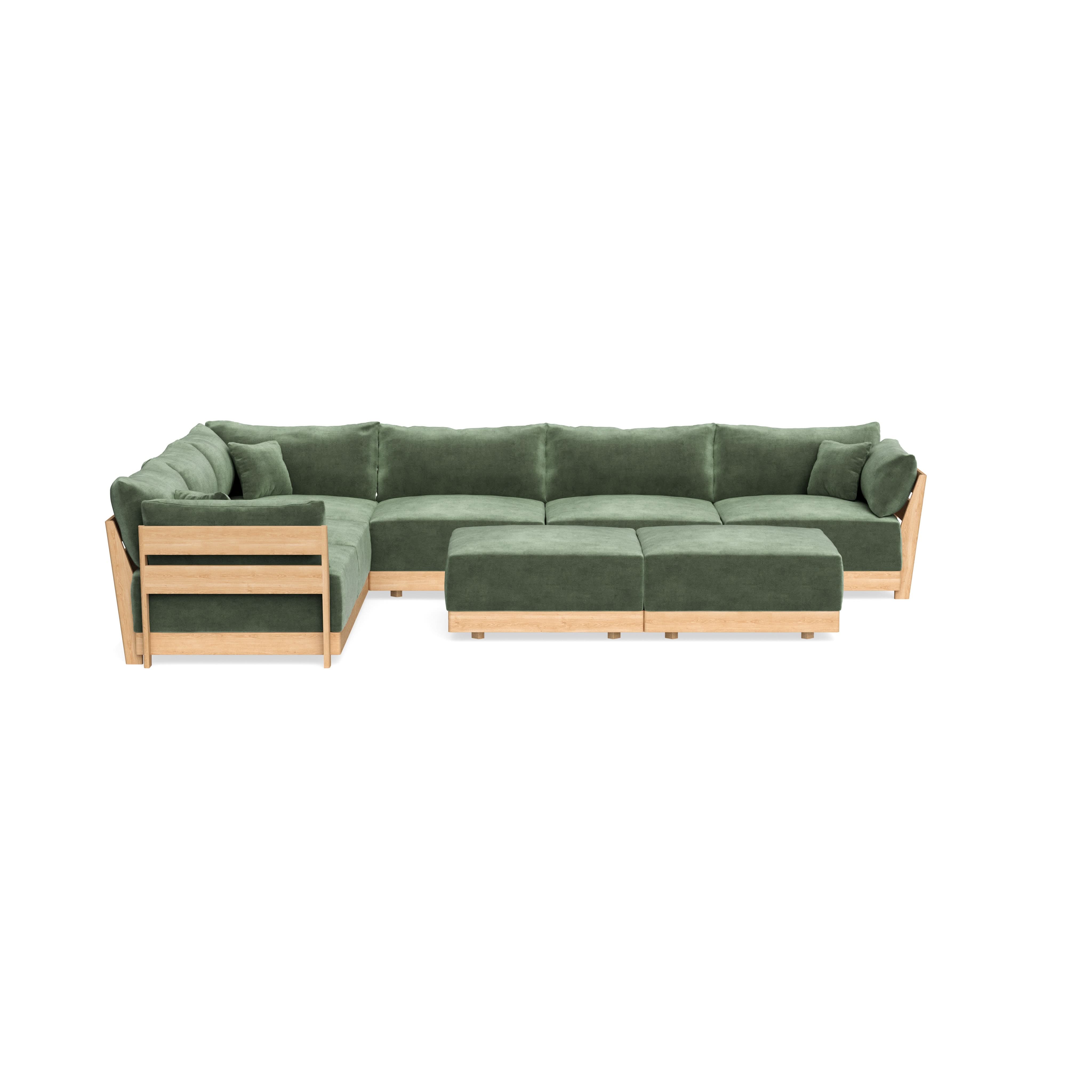 Modular Bondi Latte 6-Seater Corner Sectional + Bench Ottoman in Rosemary | Classic Blend