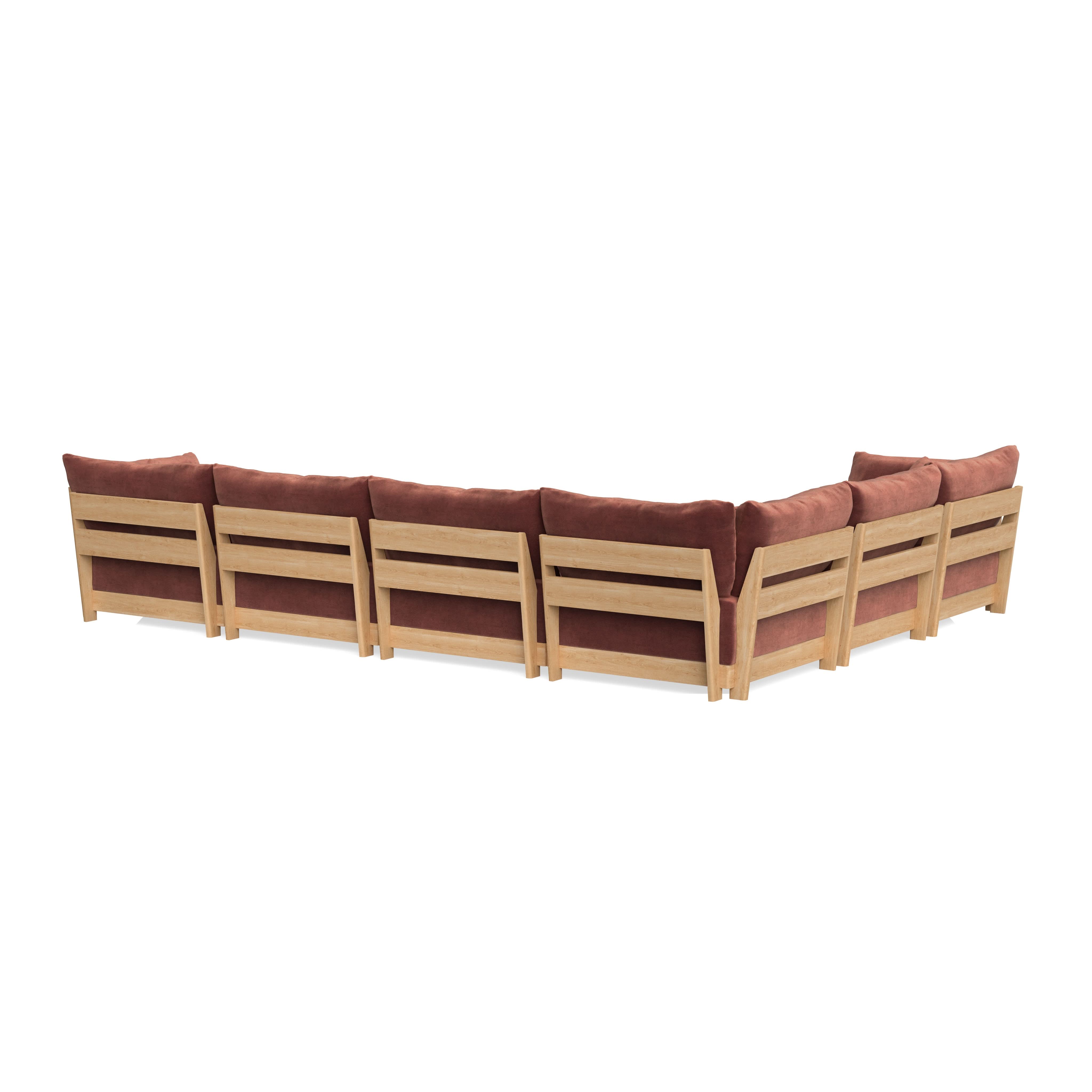 Every seat block is alike and can be used in the middle, on the end, or as a corner piece in your sofa. Each solid wood arm/back panel is identical and can be attached to any three sides of a seat block. Ottomans are adaptable too, as they can stand alone or serve as an extension to your sofa by being attached to any seat block at its base. Note that arm/back panels cannot be attached to an ottoman base.