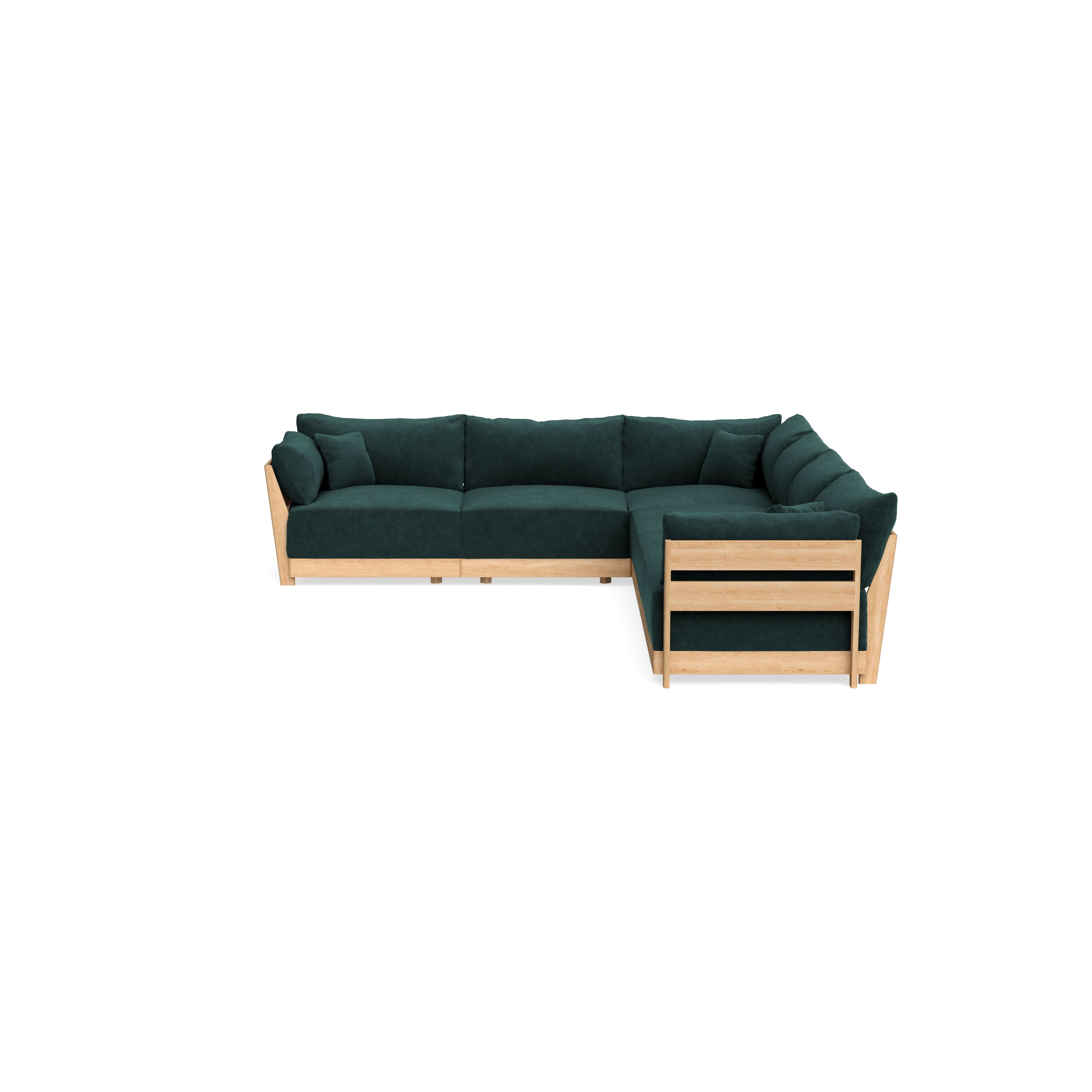 Made to move and adapt with your ever-changing lifestyle. Every patent pending seat block is alike and can be used in the middle, on the end, or as a corner piece in your sofa. Likewise, every slatted solid wood panel is identical and can be used as either an “arm” or a “back”. And the ottomans? Also adaptable! Ottomans can stand alone or serve as an extension to your sofa by connecting to any seat module at its base.