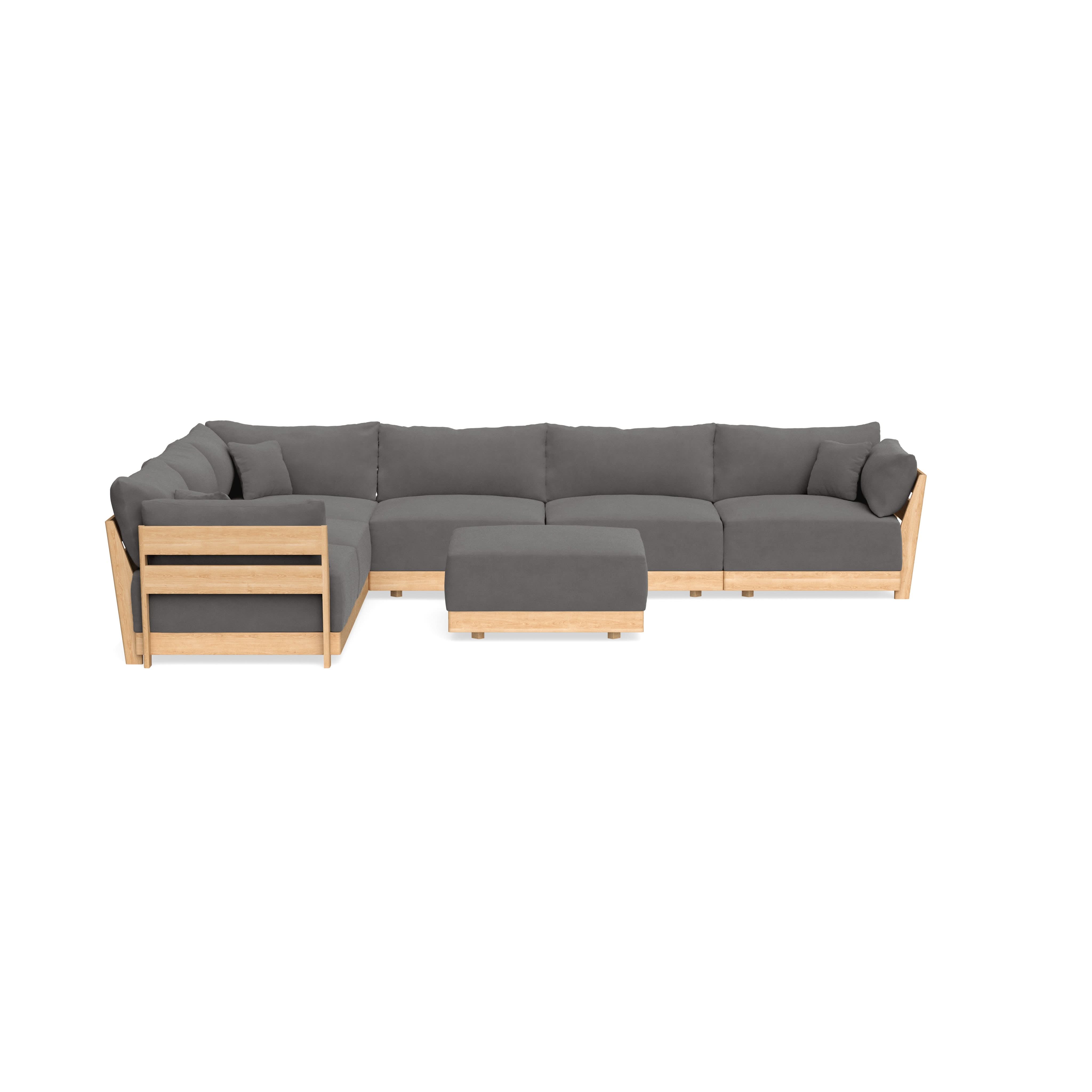 Made to move and adapt with your ever-changing lifestyle. Every patent pending seat block is alike and can be used in the middle, on the end, or as a corner piece in your sofa. Likewise, every slatted solid wood panel is identical and can be used as either an “arm” or a “back”. And the ottomans? Also adaptable! Ottomans can stand alone or serve as an extension to your sofa by connecting to any seat module at its base.
