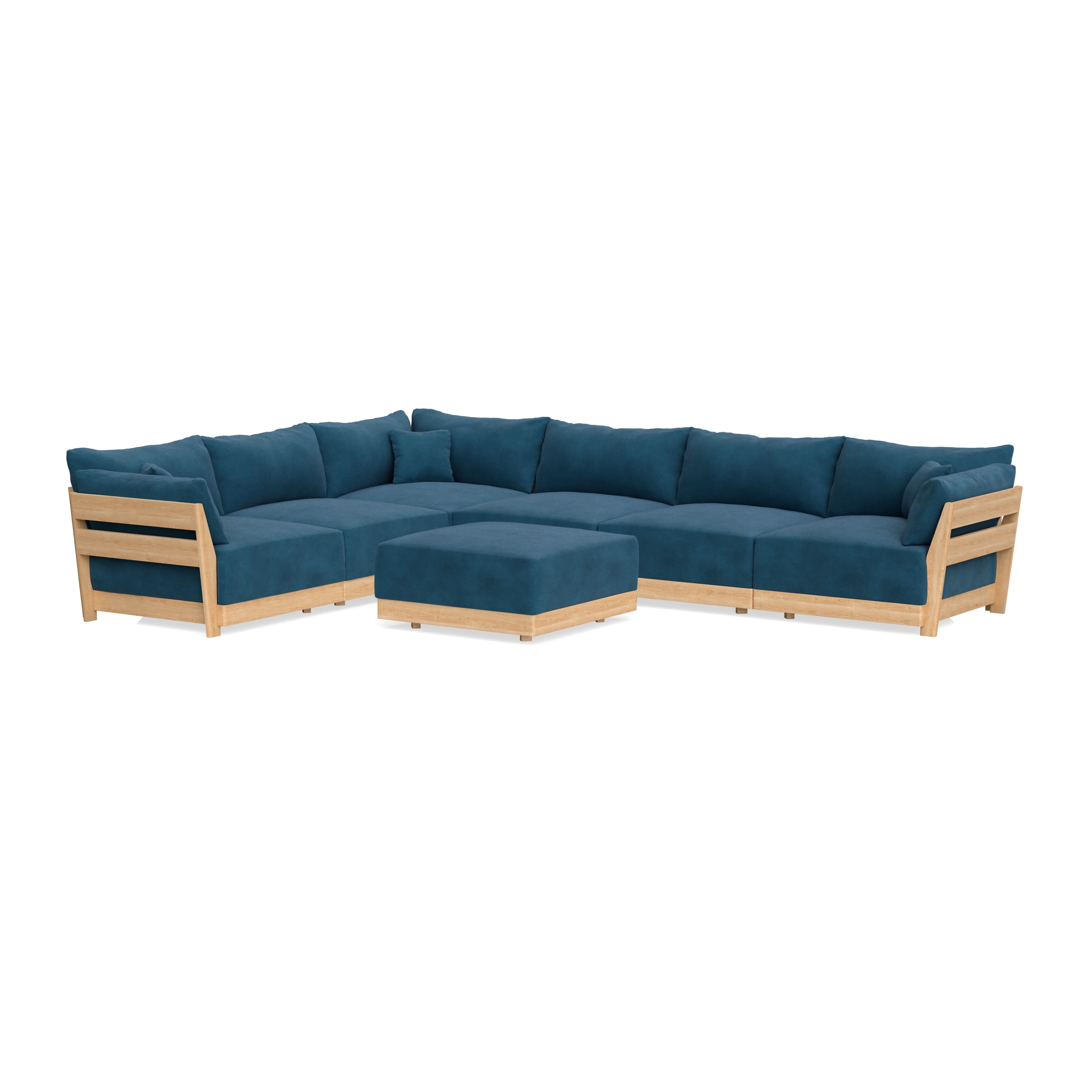 Modular Bondi Latte 6-Seater Corner Sectional + Ottoman in Commodore Blue | Classic Blend