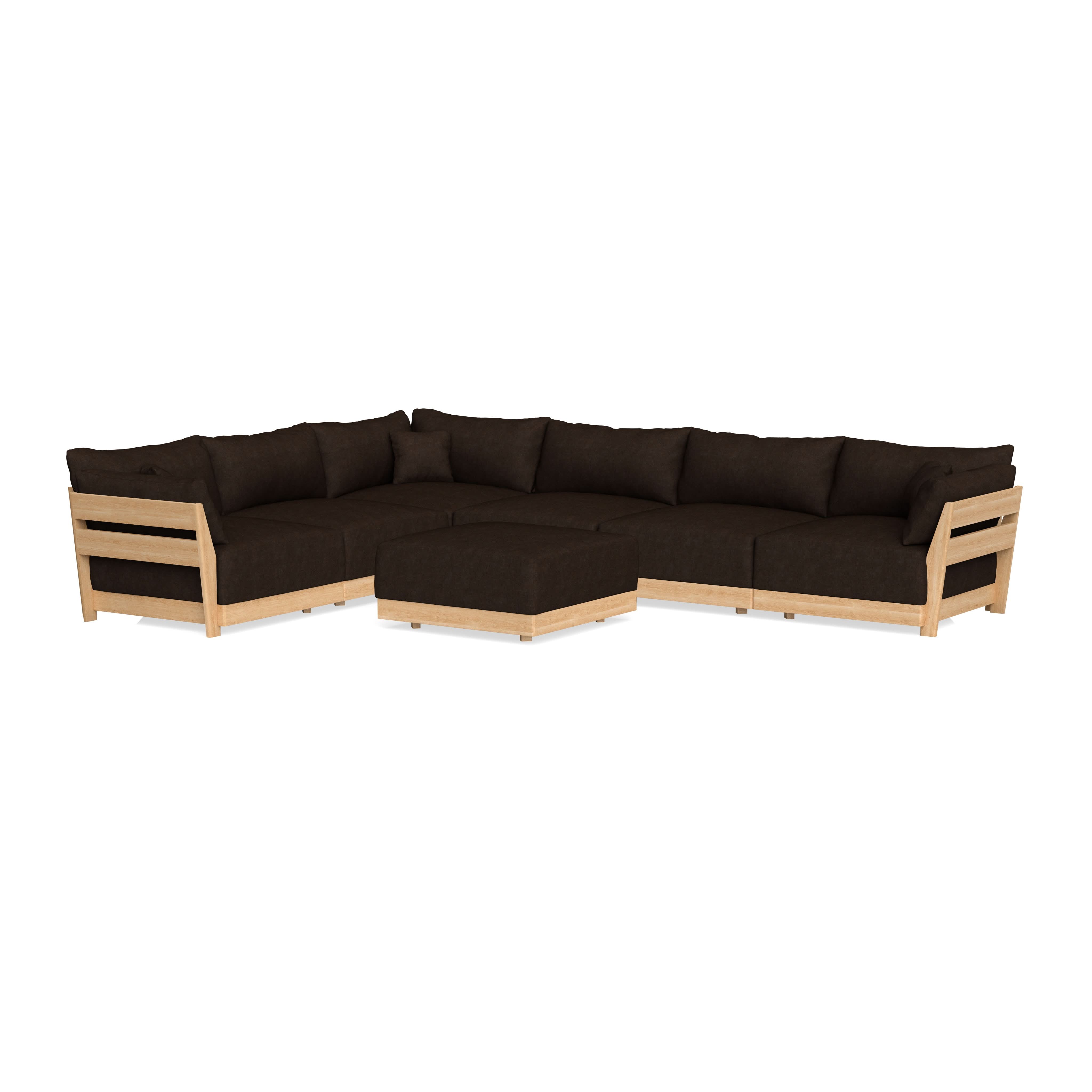 Modular Bondi Latte 6-Seater Corner Sectional + Ottoman in Espresso | Classic Blend