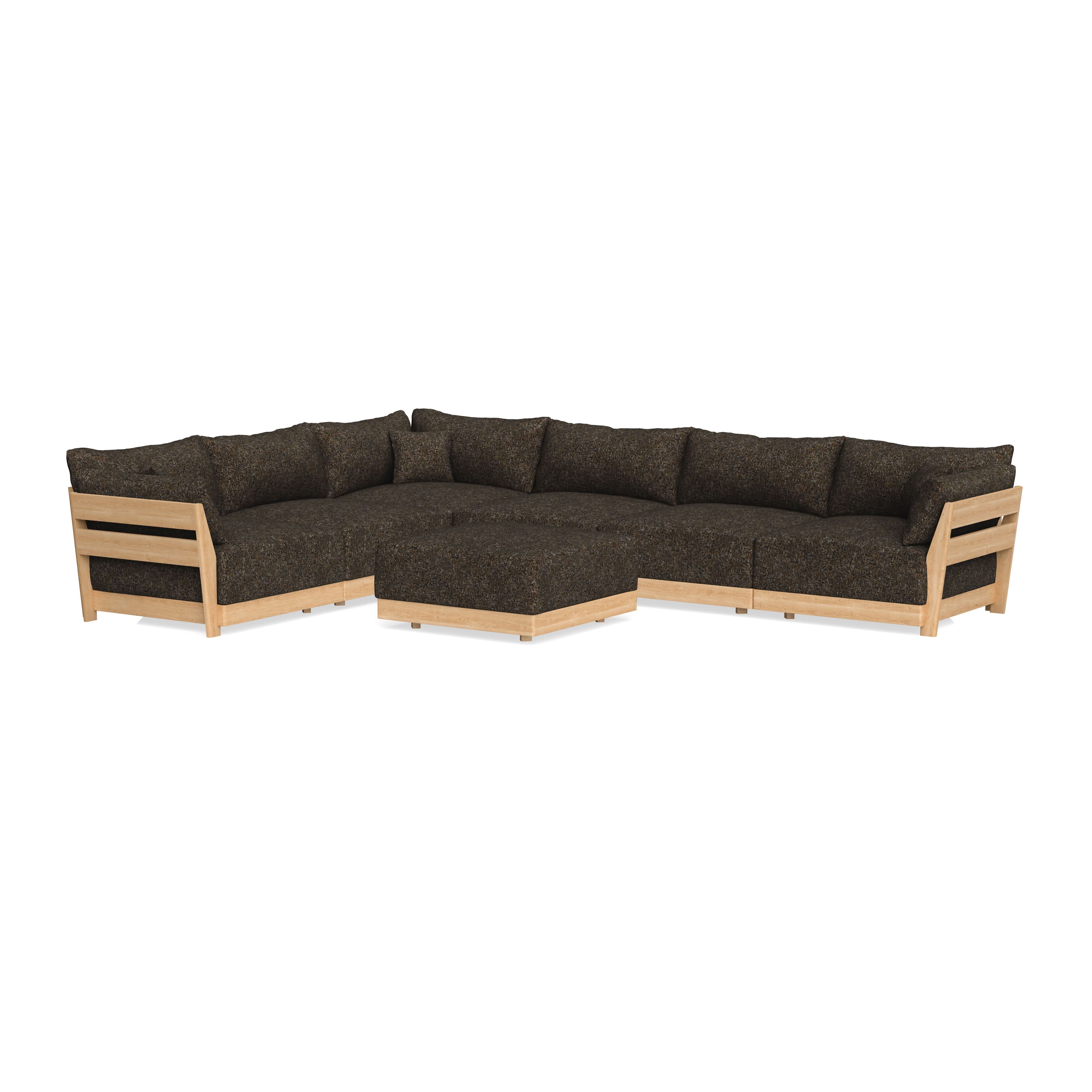 Modular Bondi Latte 6-Seater Corner Sectional + Ottoman in Phantom | Classic Blend